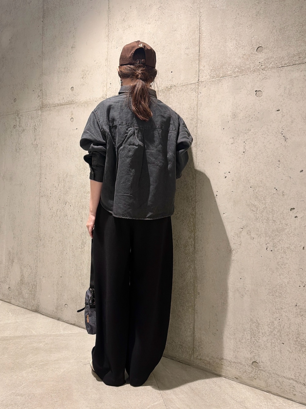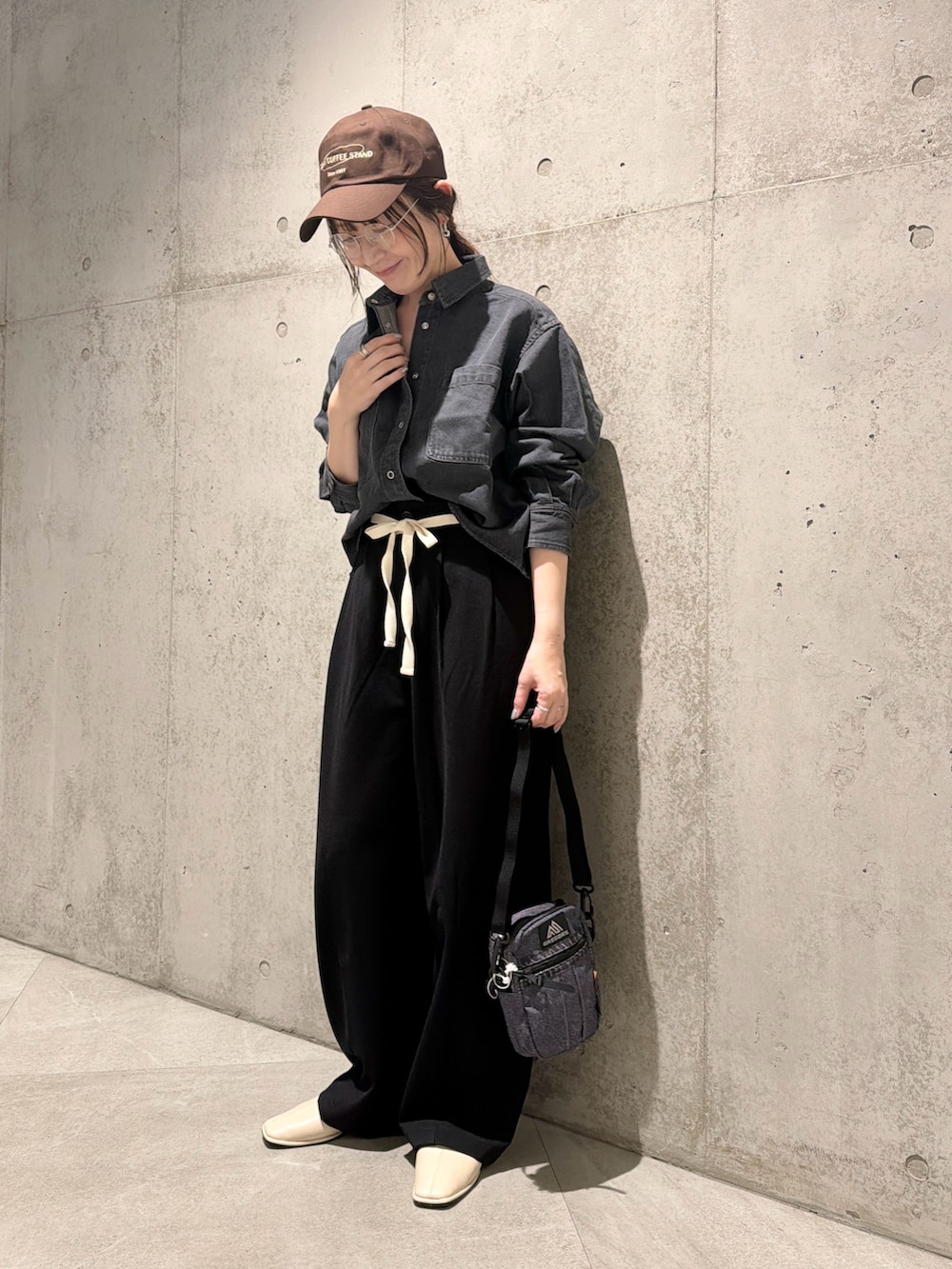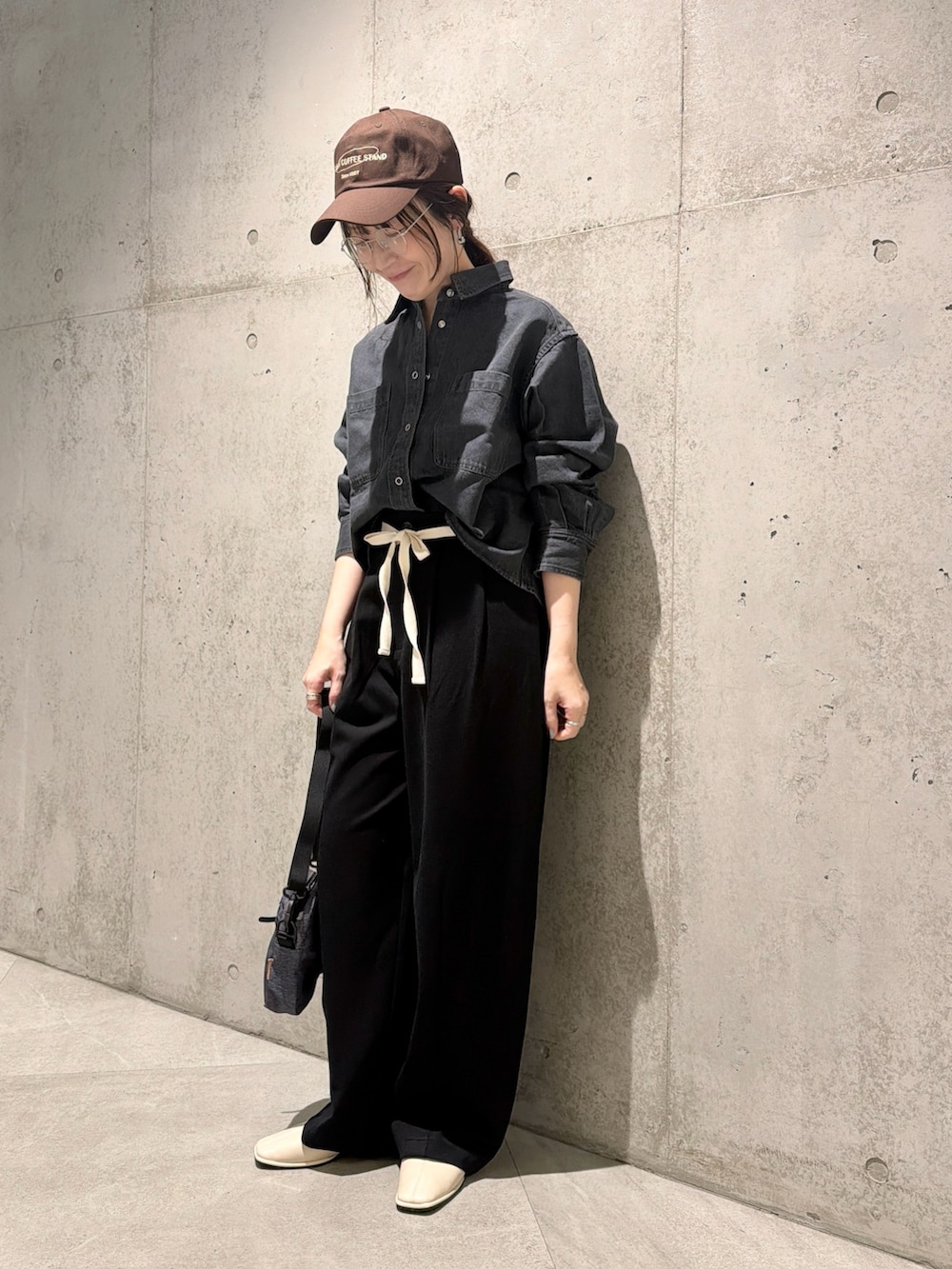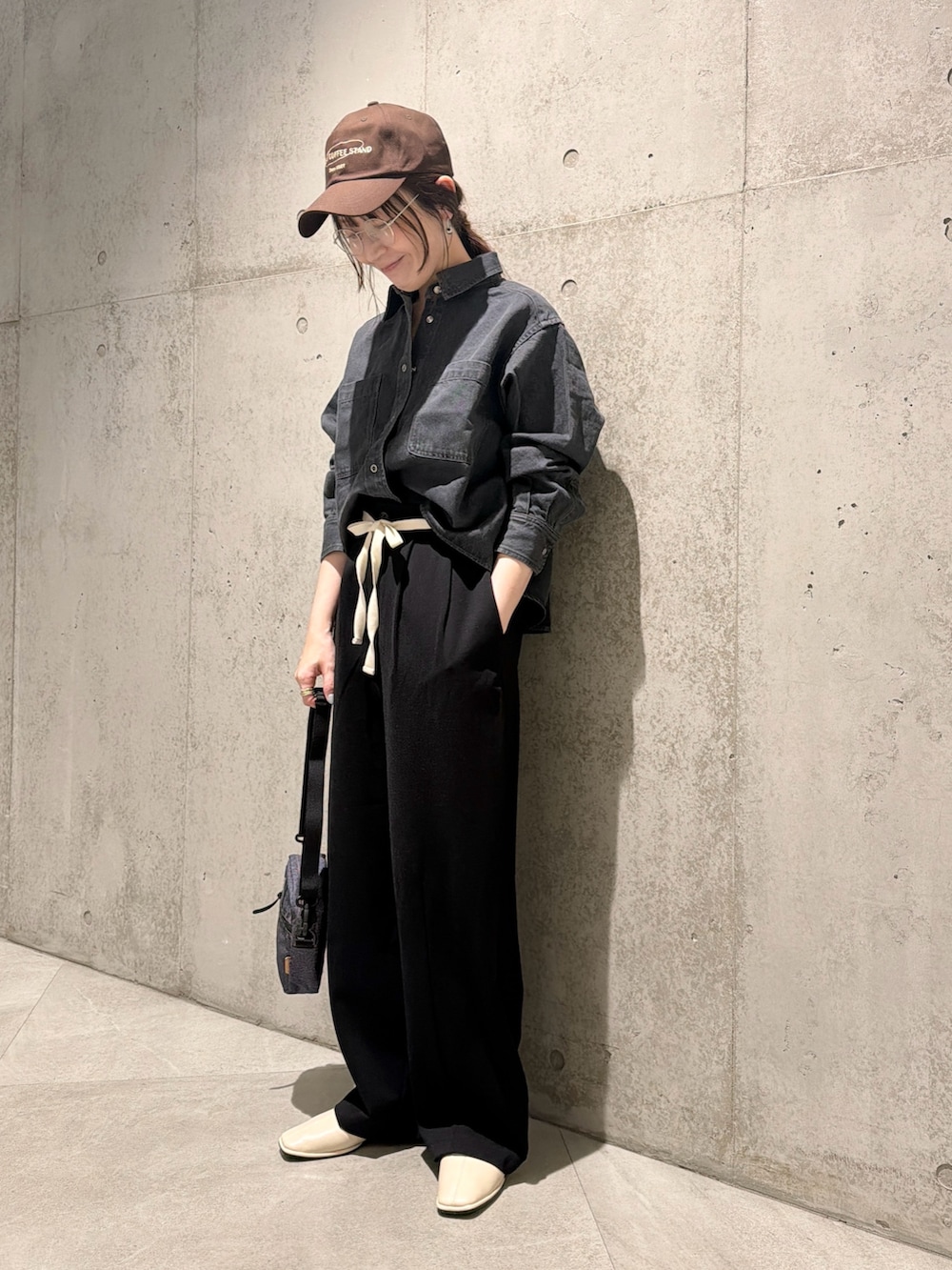 今回は、ウエストのリボン紐がアクセントになる、ワイドパンツとカジュアルに合わせてみました。