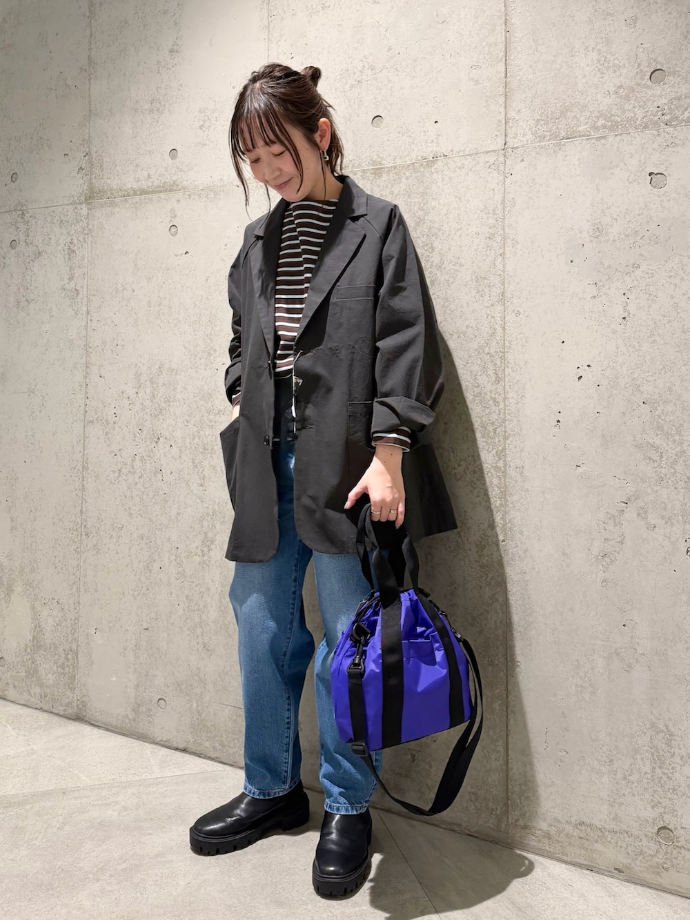 今回は、ボーダー柄をアクセントにしたカジュアルコーディネートです。