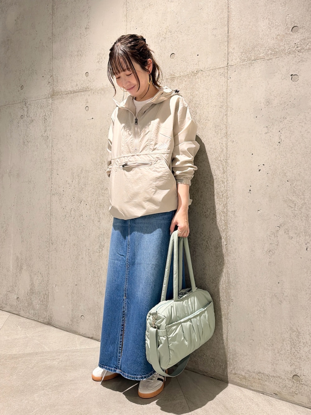 今回は、こなれ感のあるカラーが特徴的なデニムのスカートを合わせたカジュアルコーディネート。