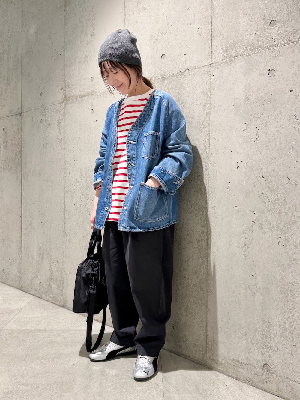今回は、ボーダー柄のロンTをアクセントにしたカジュアルコーディネート。