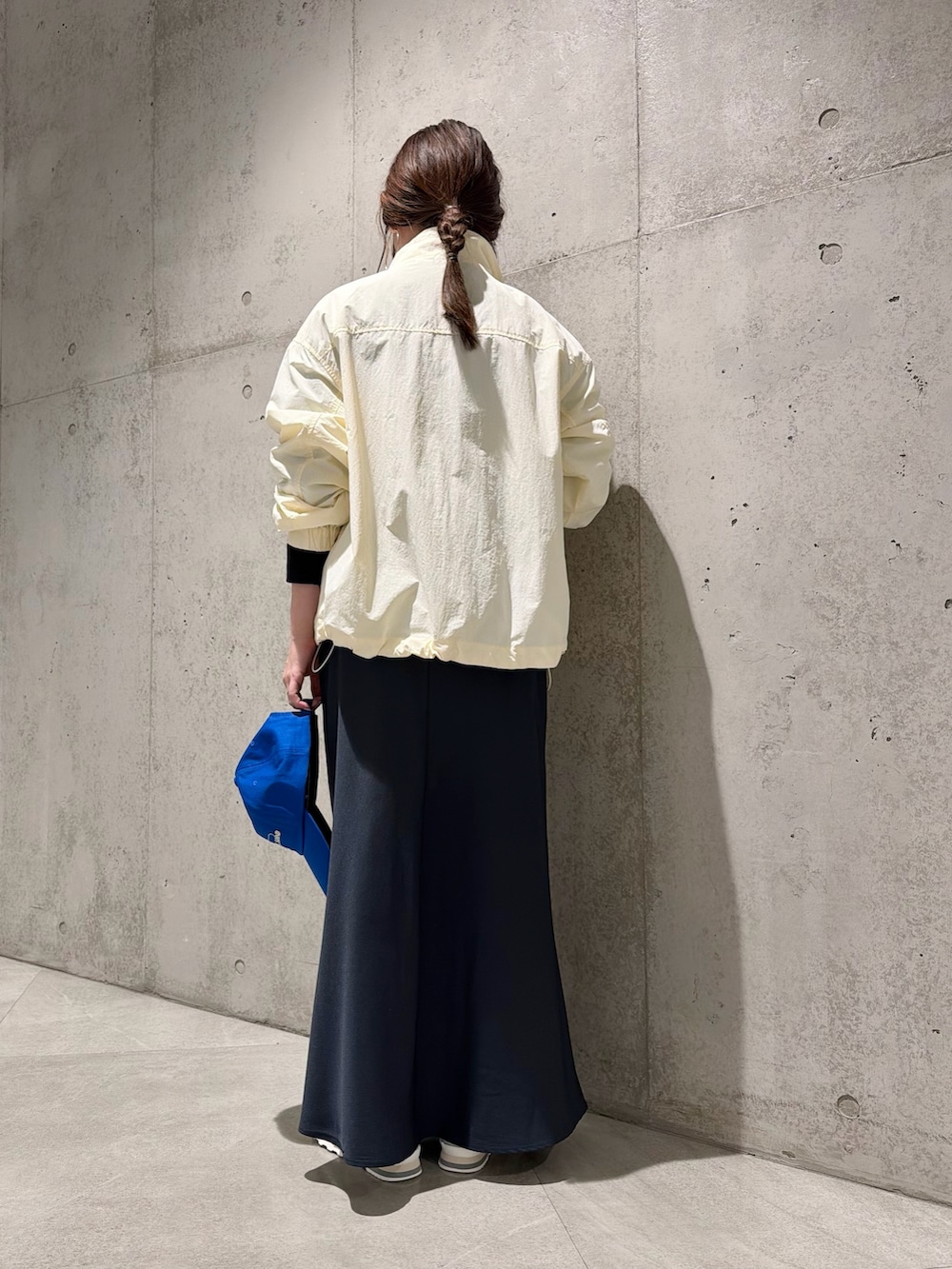 スタンドネックとフロントポケットがポイントのアイテム。