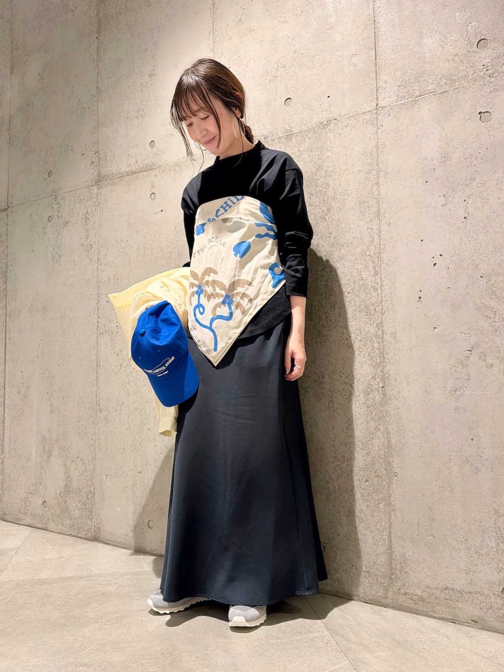 今回は、スカーフをビスチェにしてアクセントにした、大人カジュアルコーディネートです。