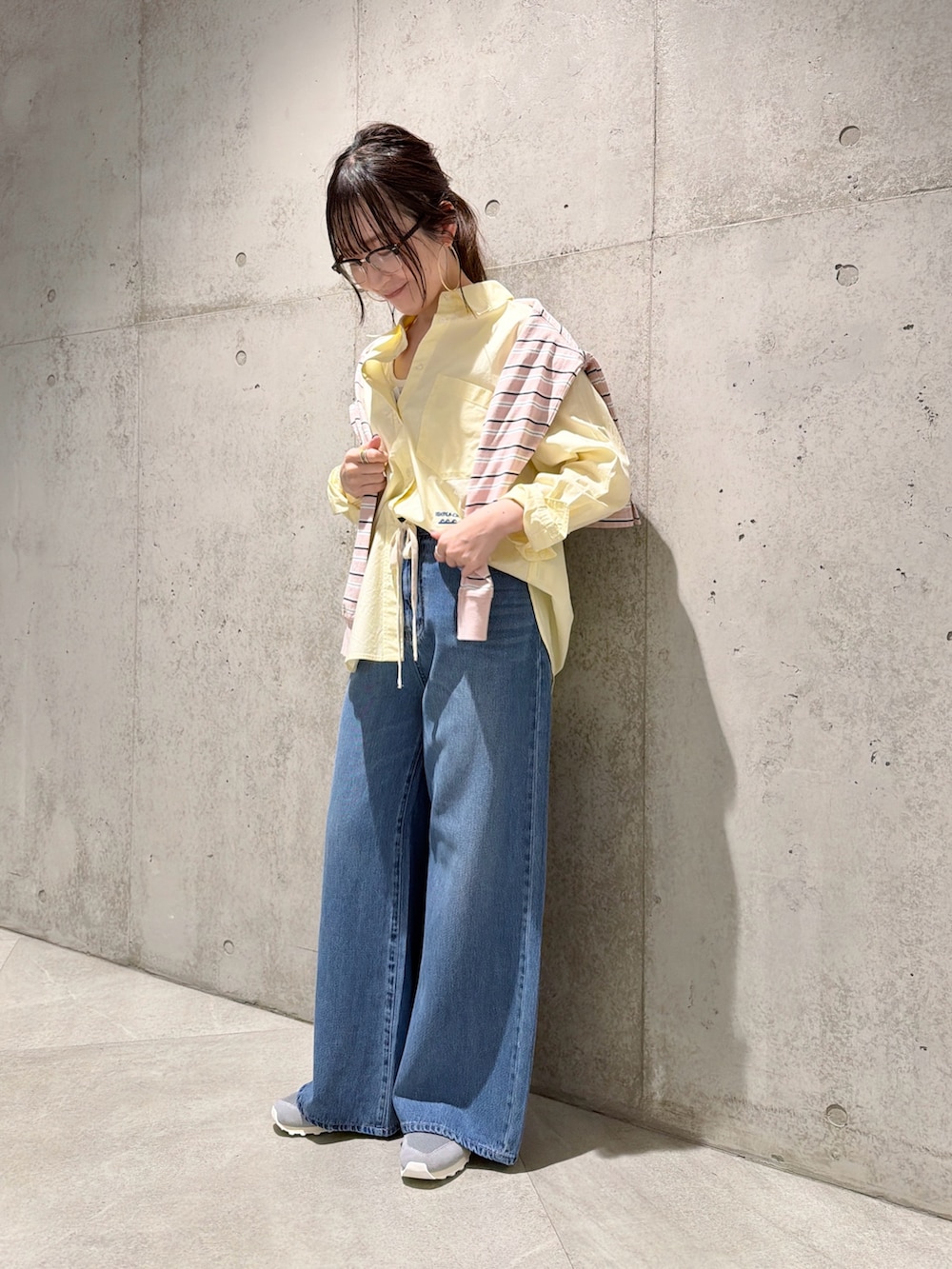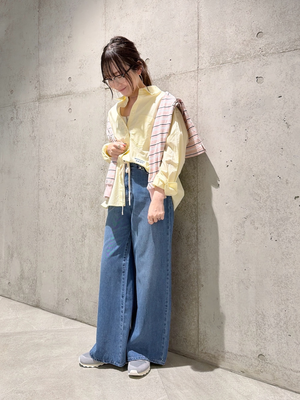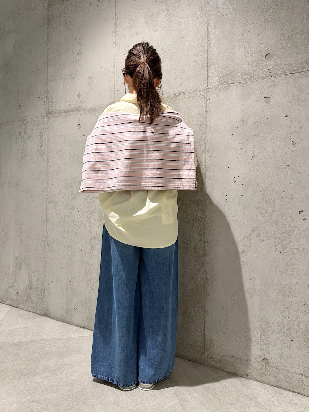 今回は、ウエストの紐がポイントのワイドデニムと合わせた、大人カジュアルコーディネートです。
