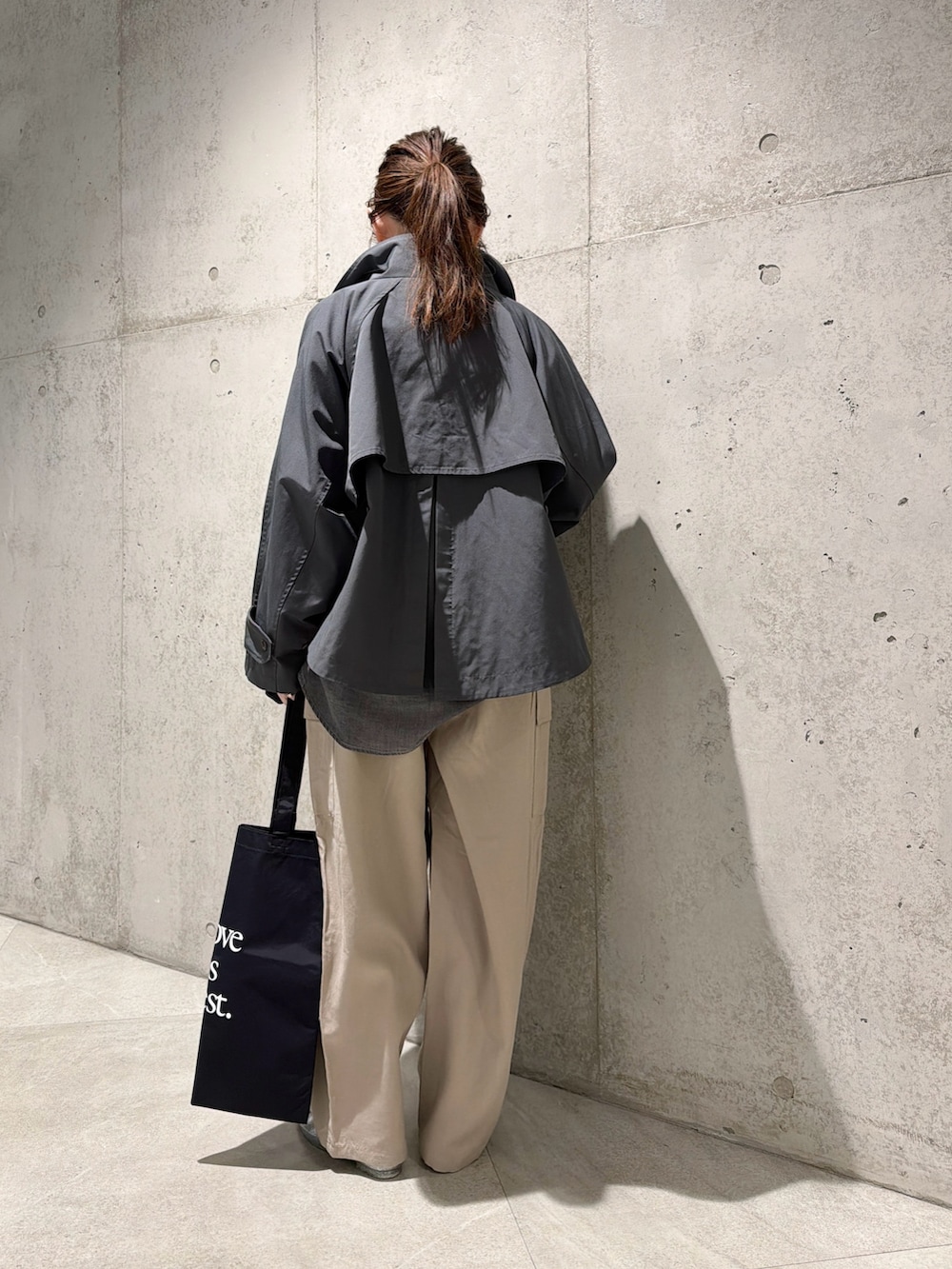 ふんわりとしたバックフレアシルエットで、羽織るだけでこなれ感を演出します。