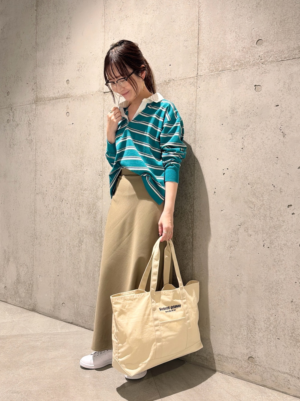 スニーカーで、カジュアルさをプラス。