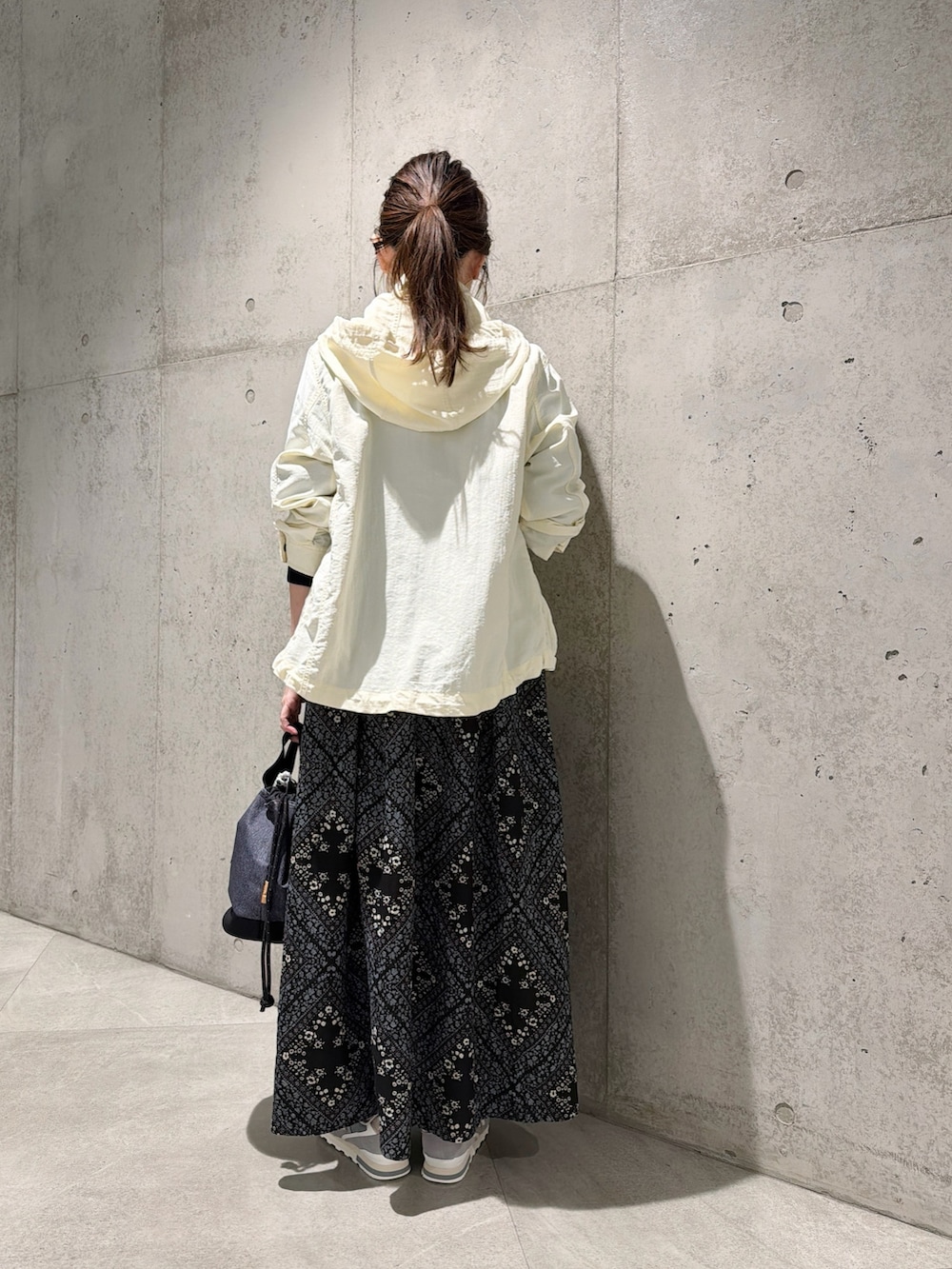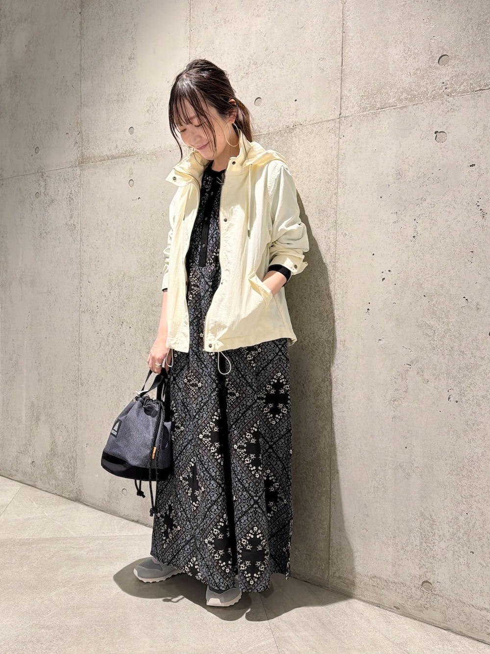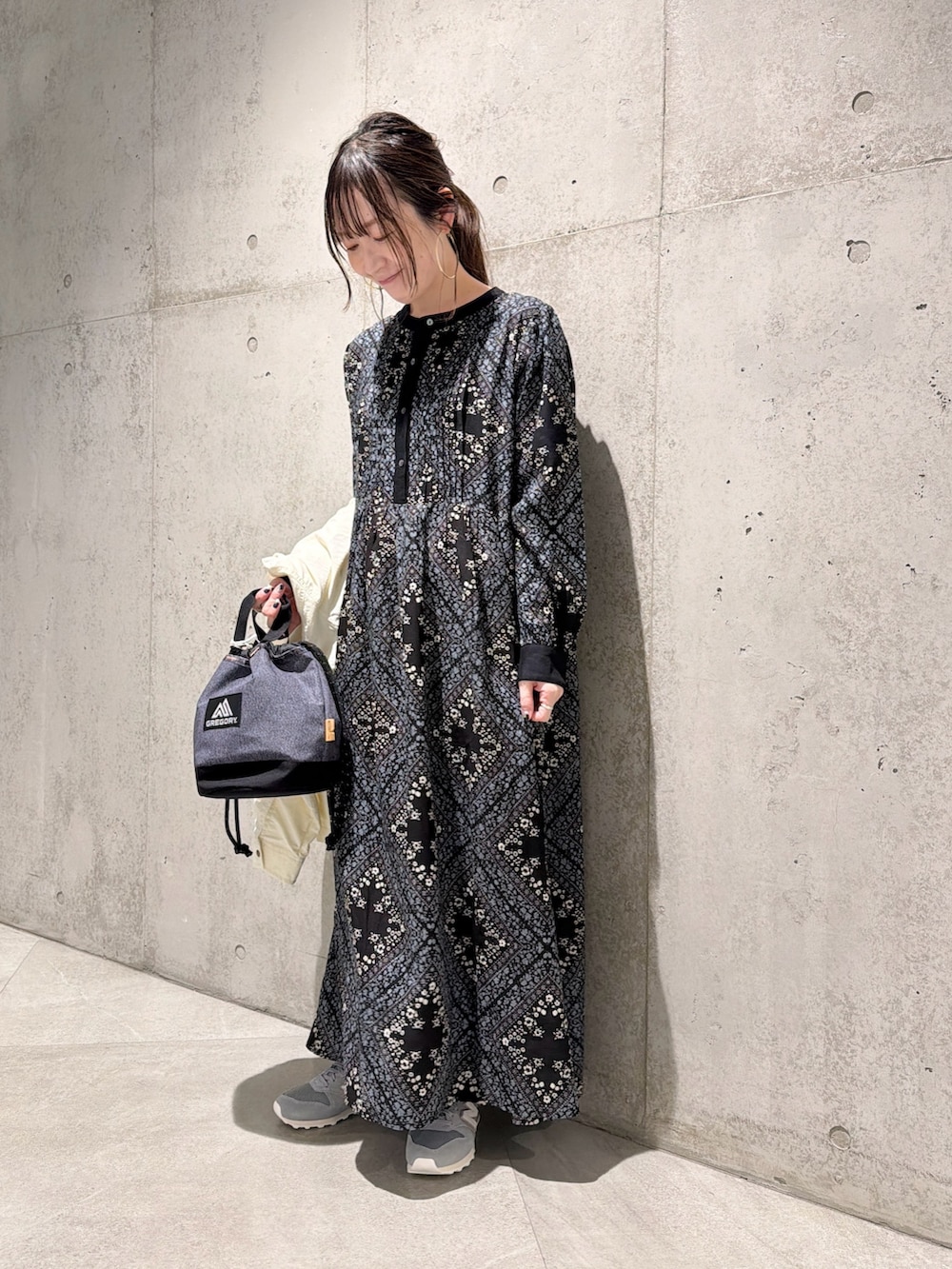 今回は、パネル柄が大人な印象のワンピースと合わせてみました。