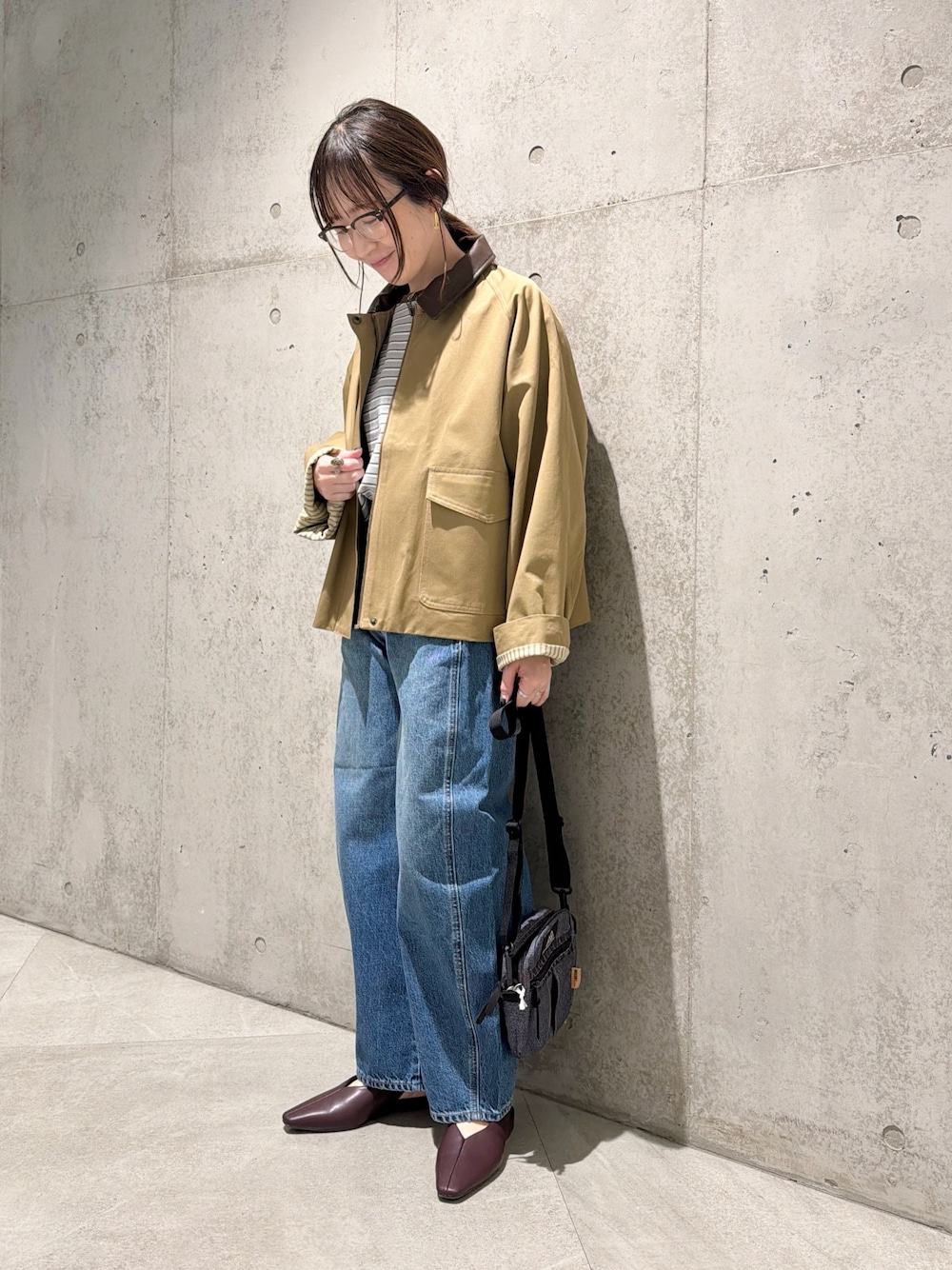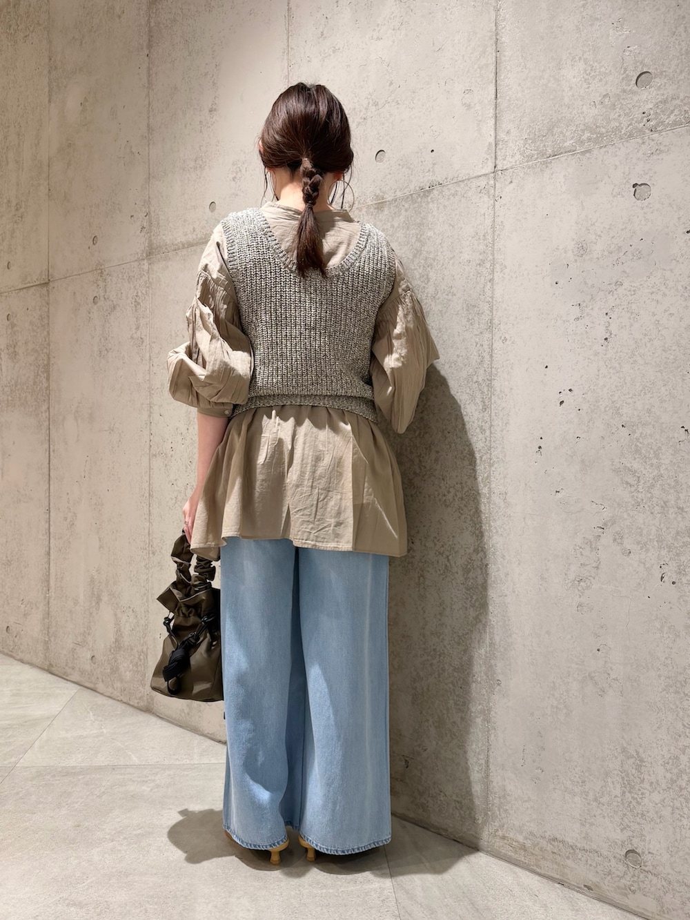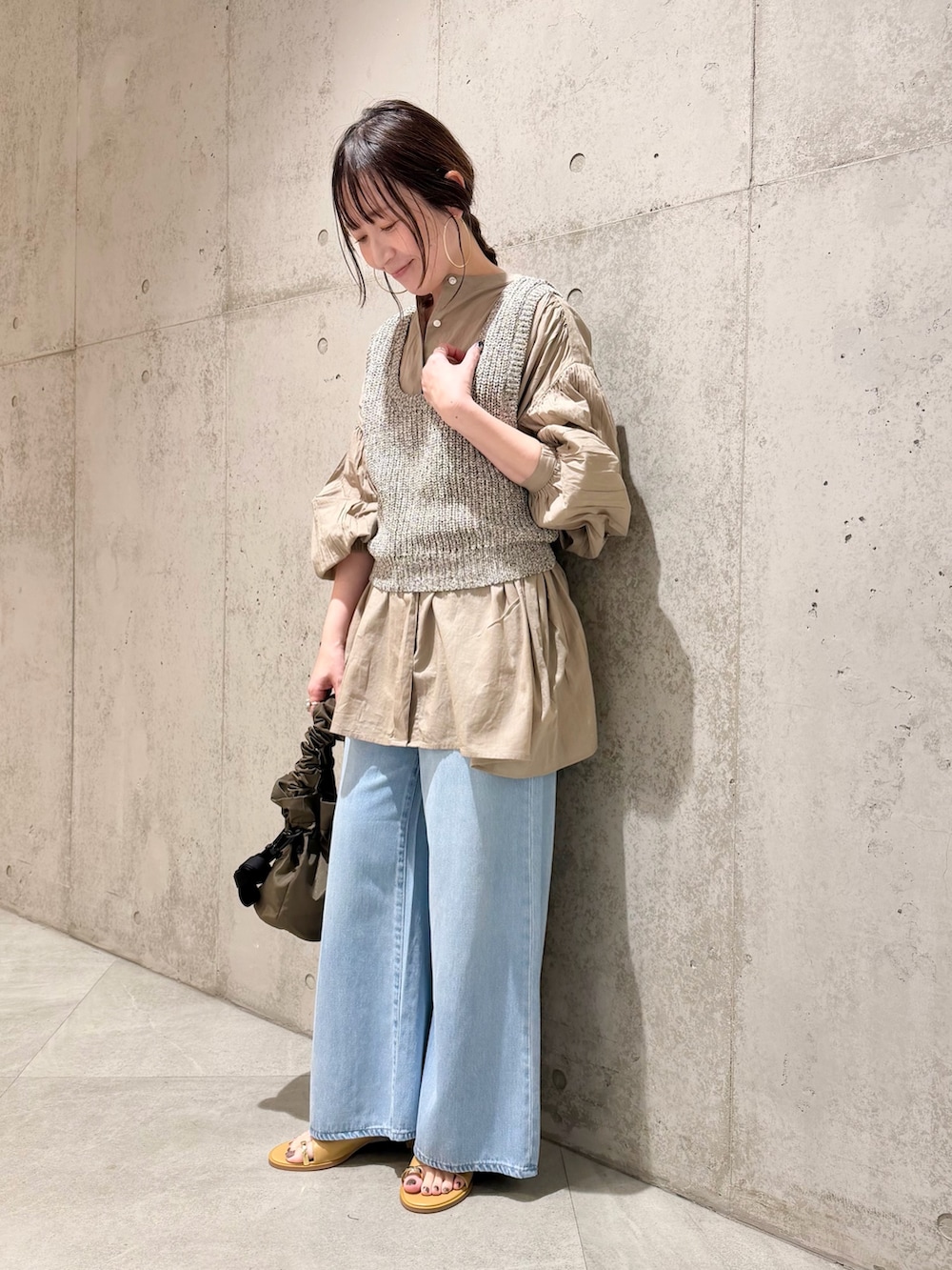 今回は、ニットベストとのレイヤードスタイル。