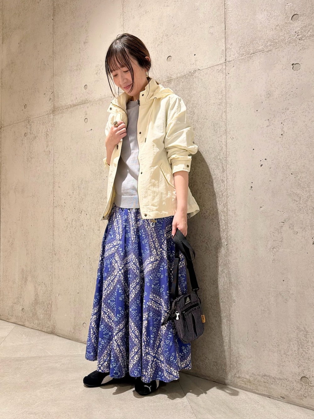 今回は、パネル柄が大人な印象のスカートと合わせてみました。