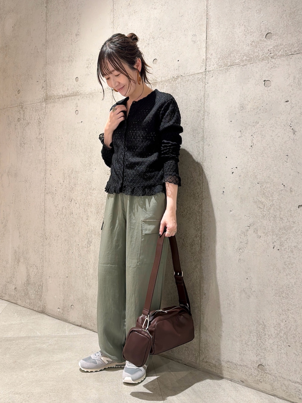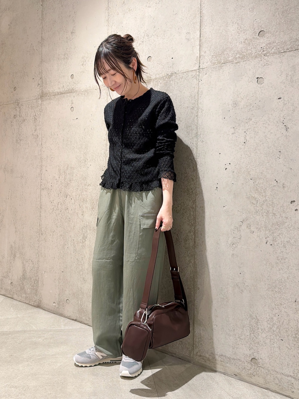 今回は、とろみのある生地が特徴的なカーゴパンツを合わせて、大人カジュアルコーディネート。