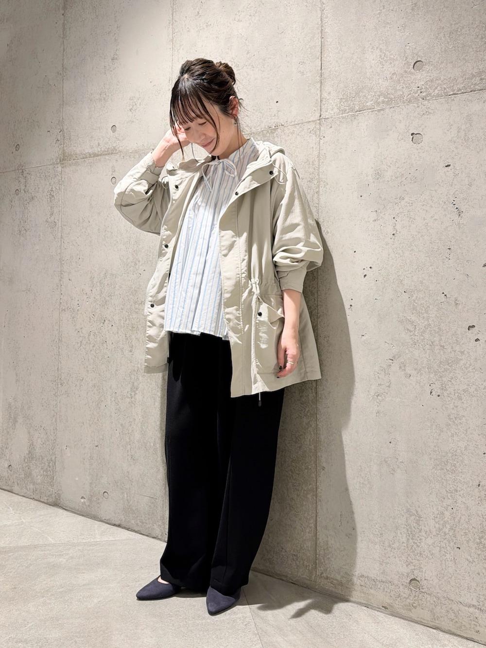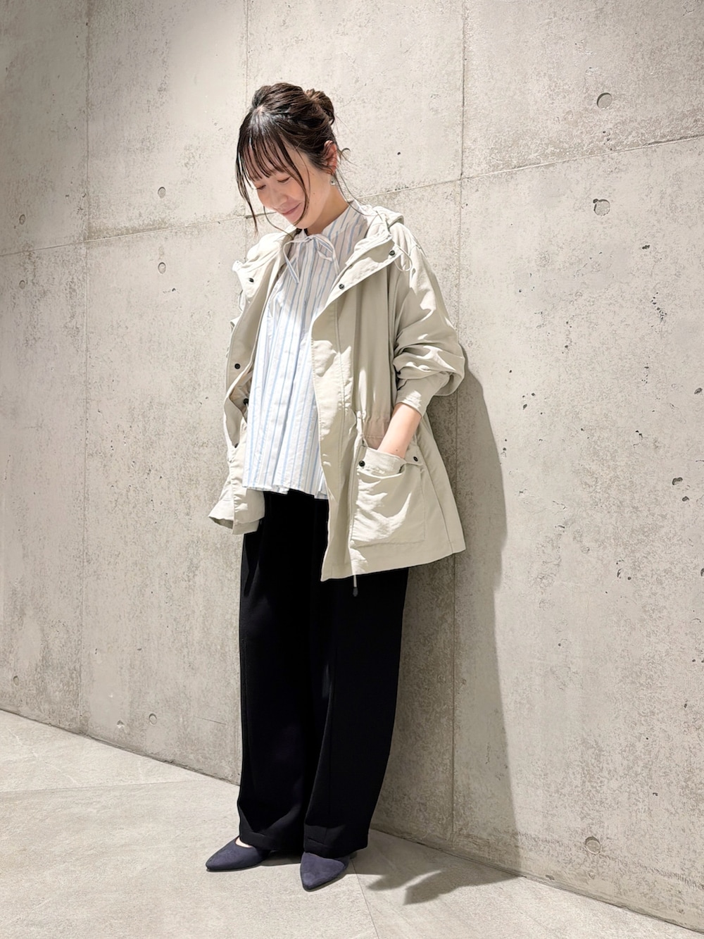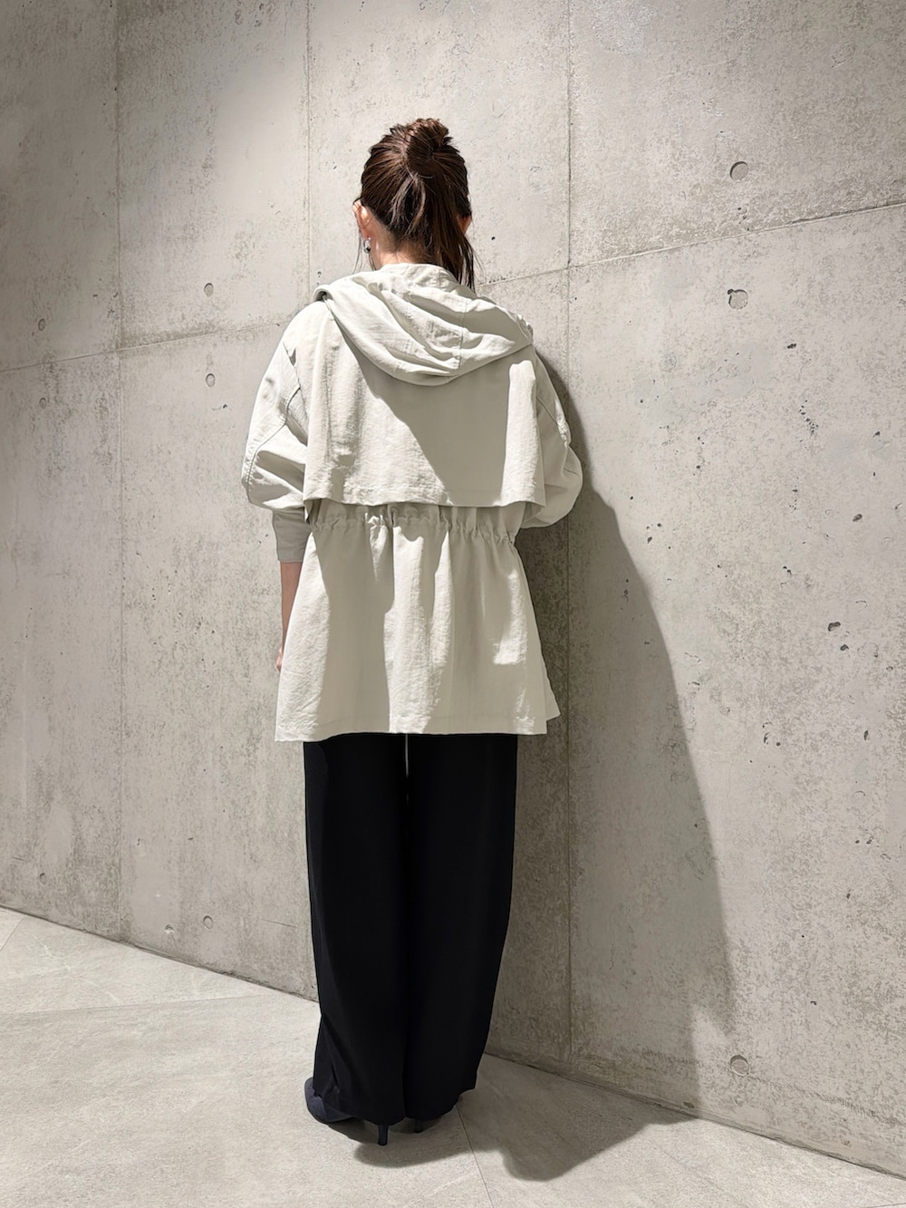 ウエストのドロストコードで調整できるため、シルエットを気分やコーディネートによって、変えていただけます。