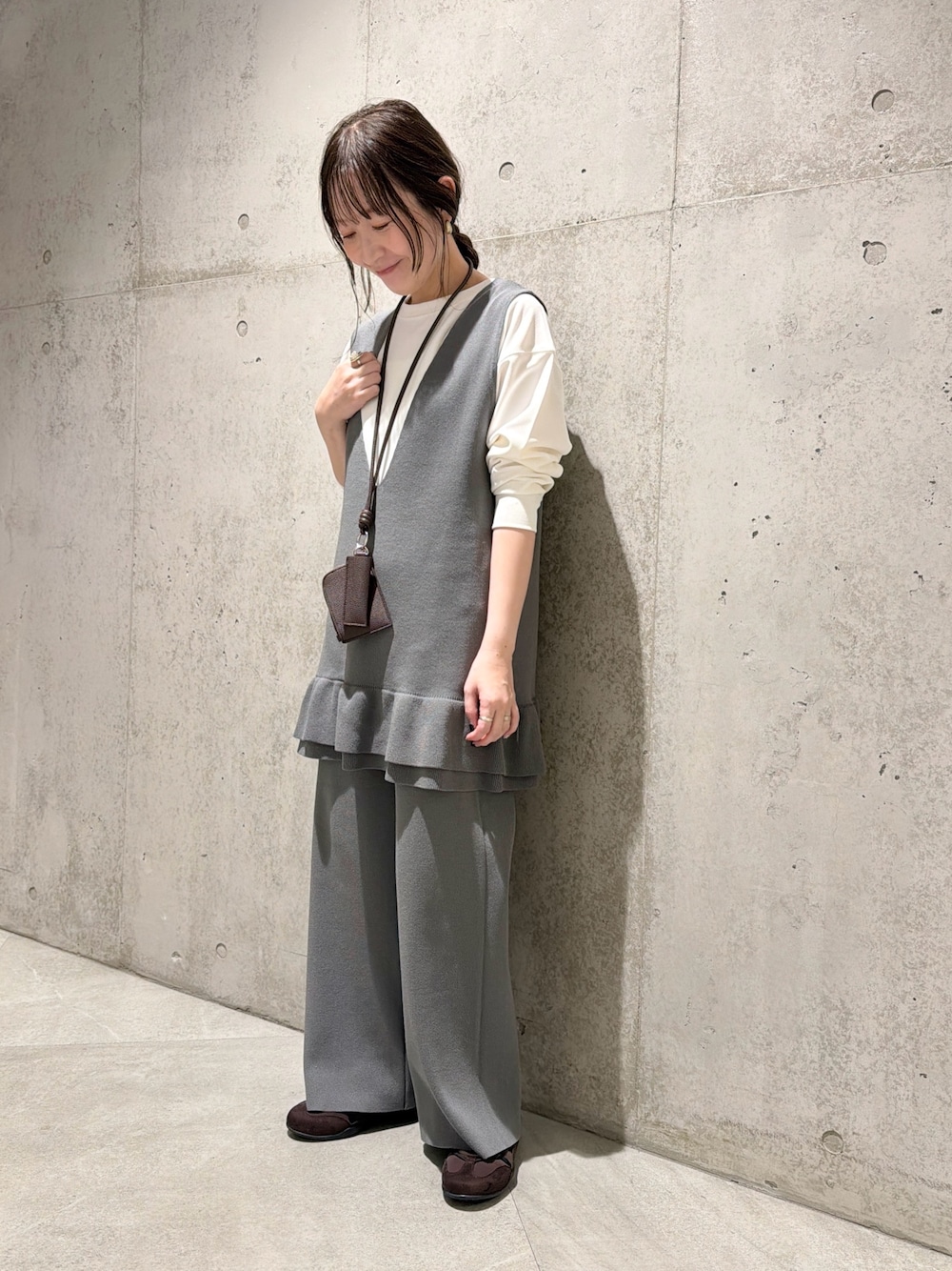 前後差のある着丈で、フロントはすっきり見えながらも腰回りをカバー。