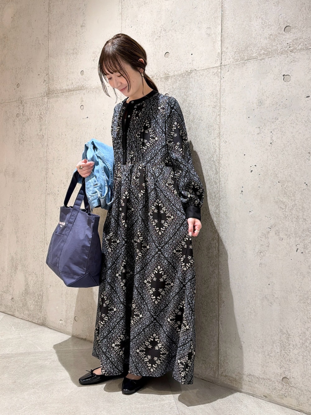 今回は、パネル柄のワンピースと合わせて、フェミニンなコーディネートにしてみました。