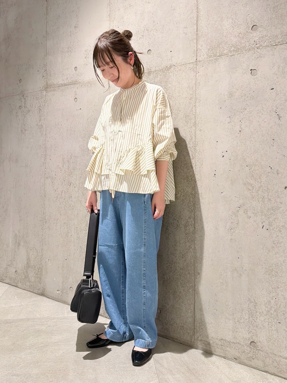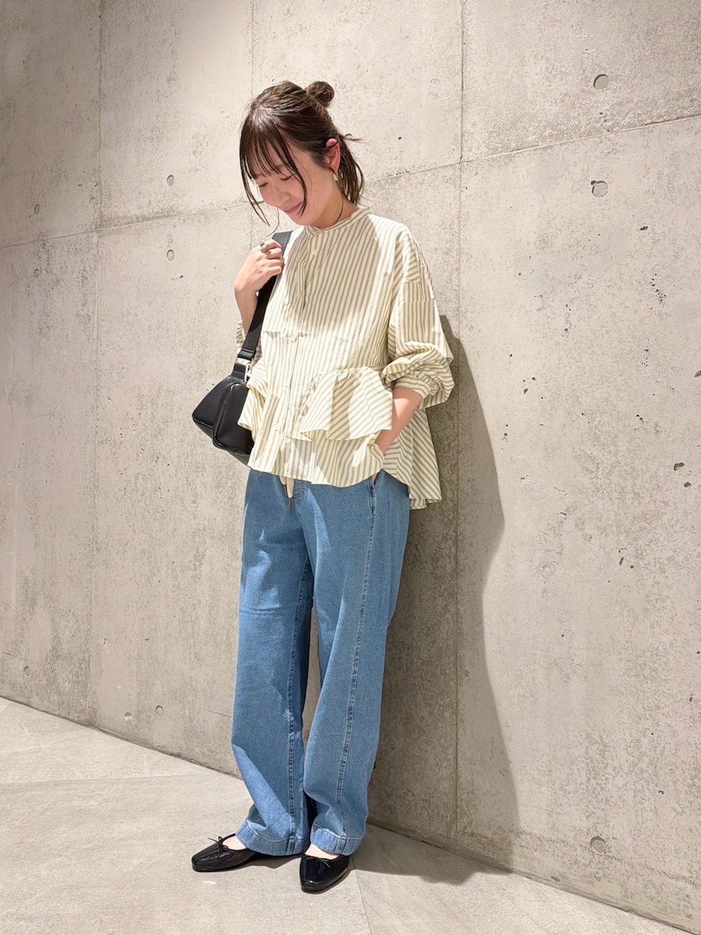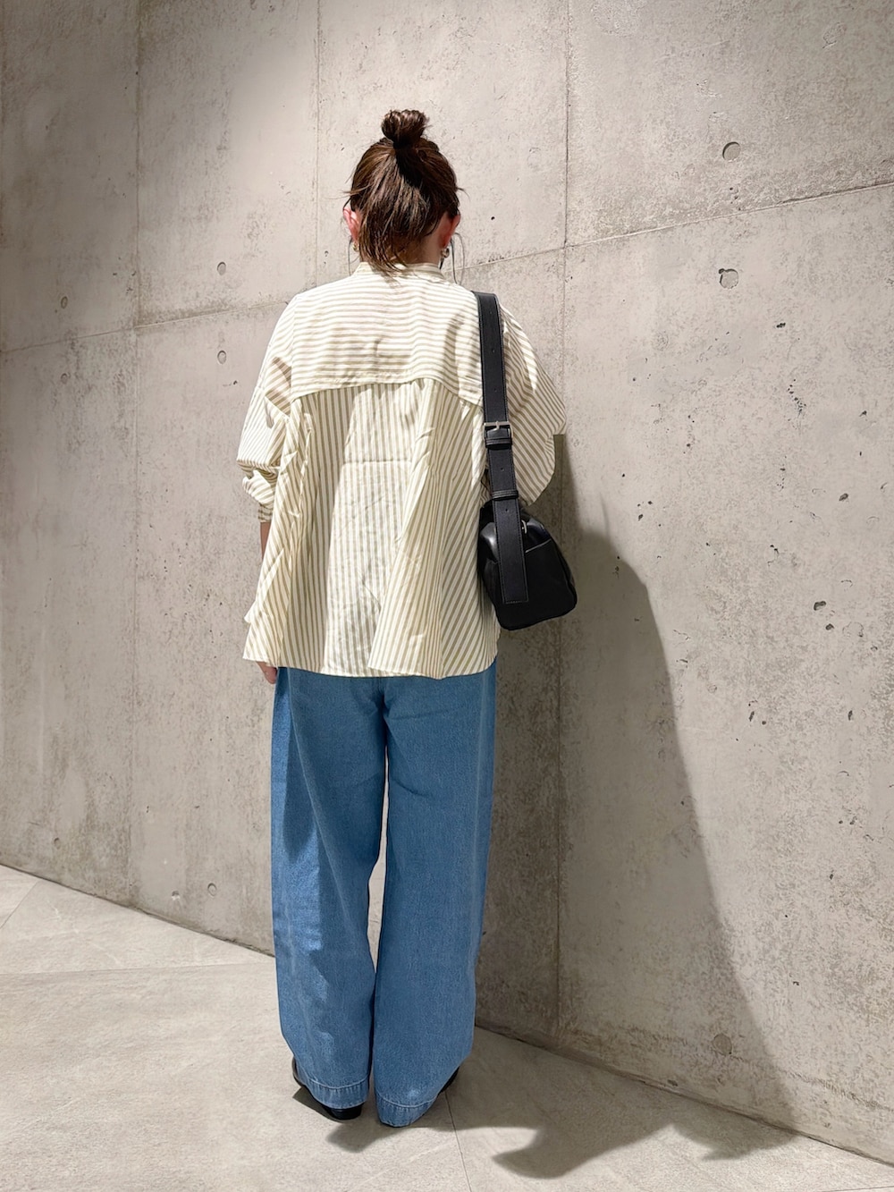 今回は、ウエストの紐がアクセントのデニムパンツを合わせた、大人カジュアルコーディネートです。