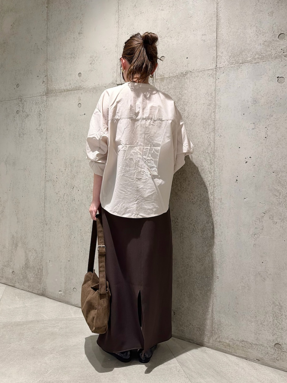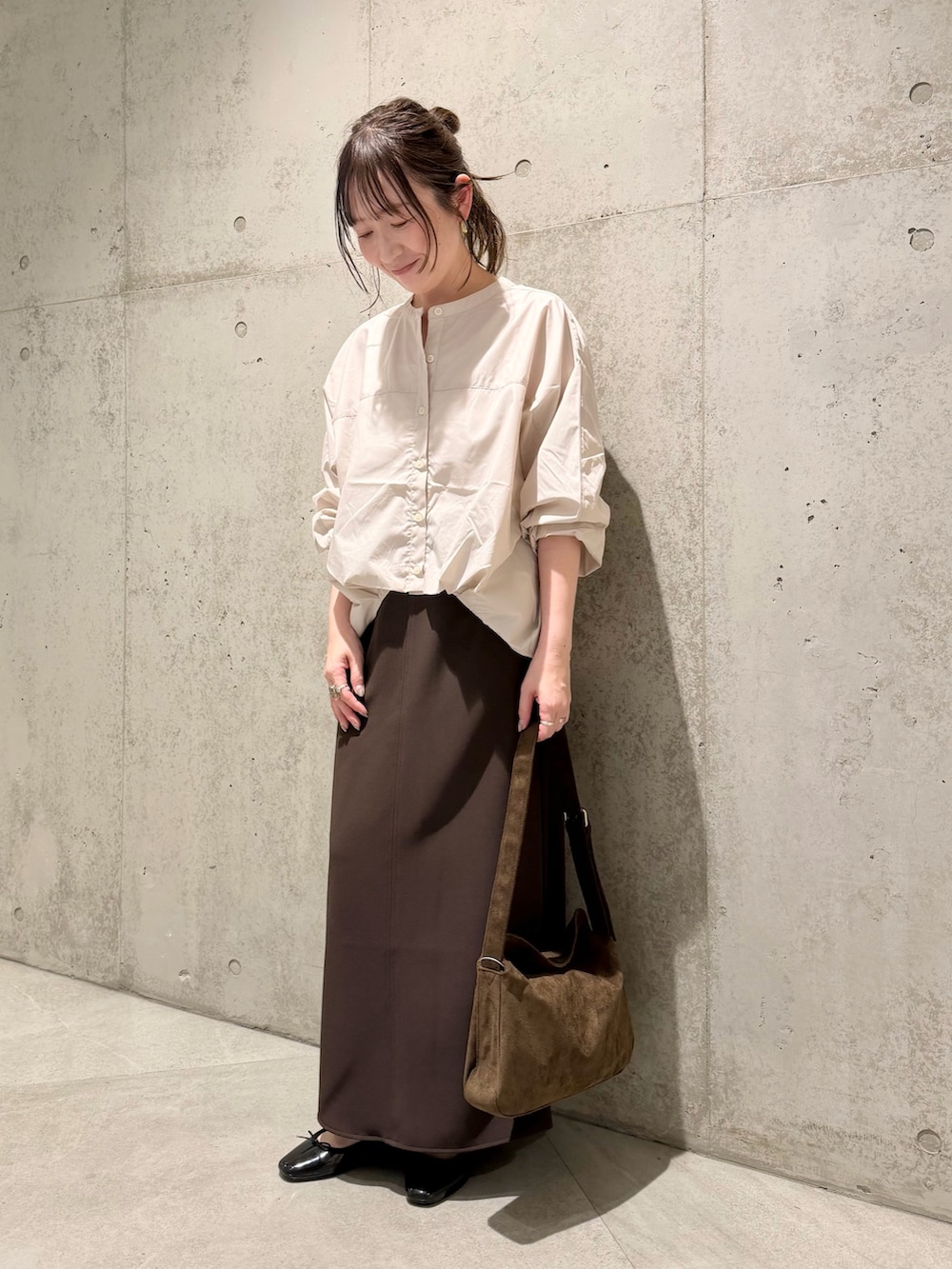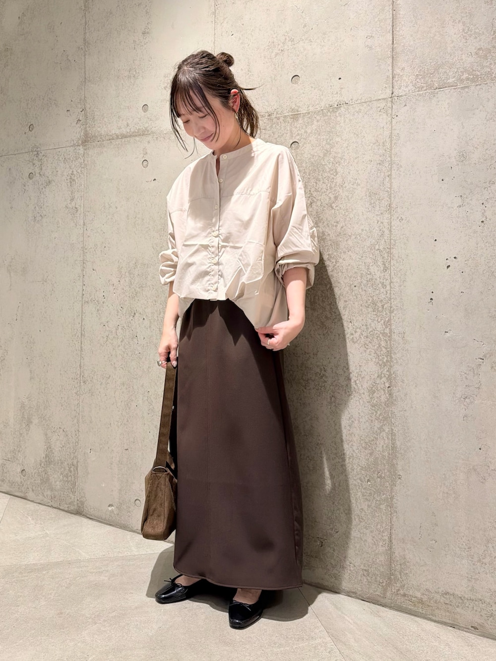 今回は、シンプルなロングスカートと合わせた、きれいめカジュアルコーディネートです。