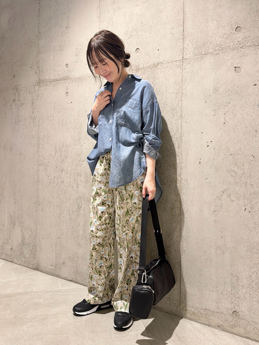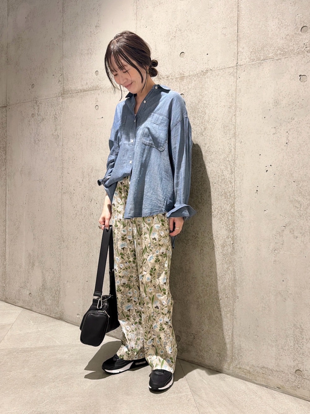 今回は、花柄のプリントパンツを合わせて、華やかさを出してみました。