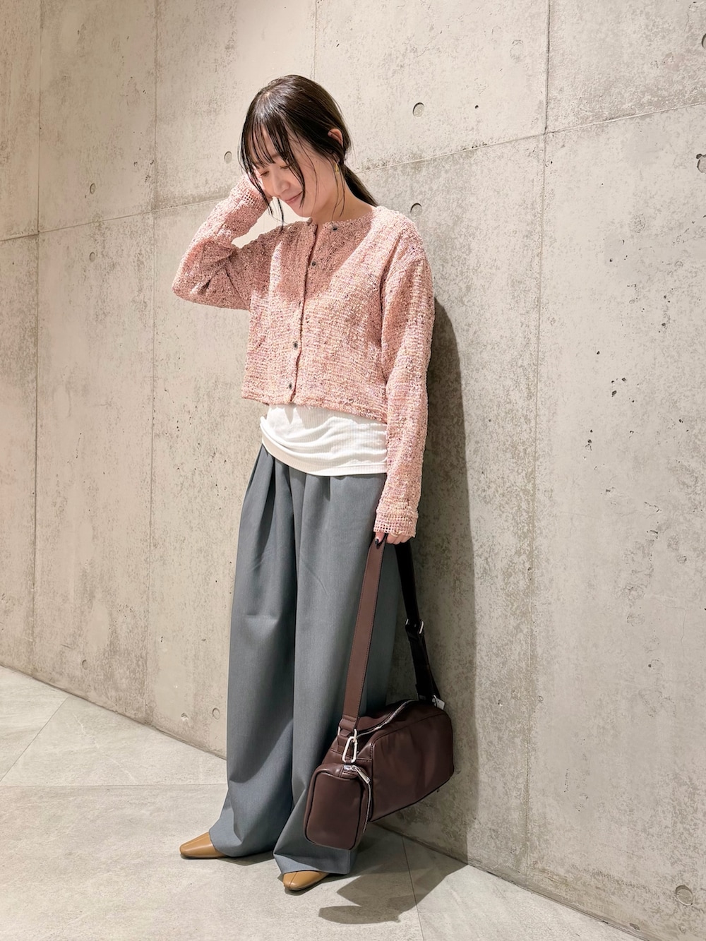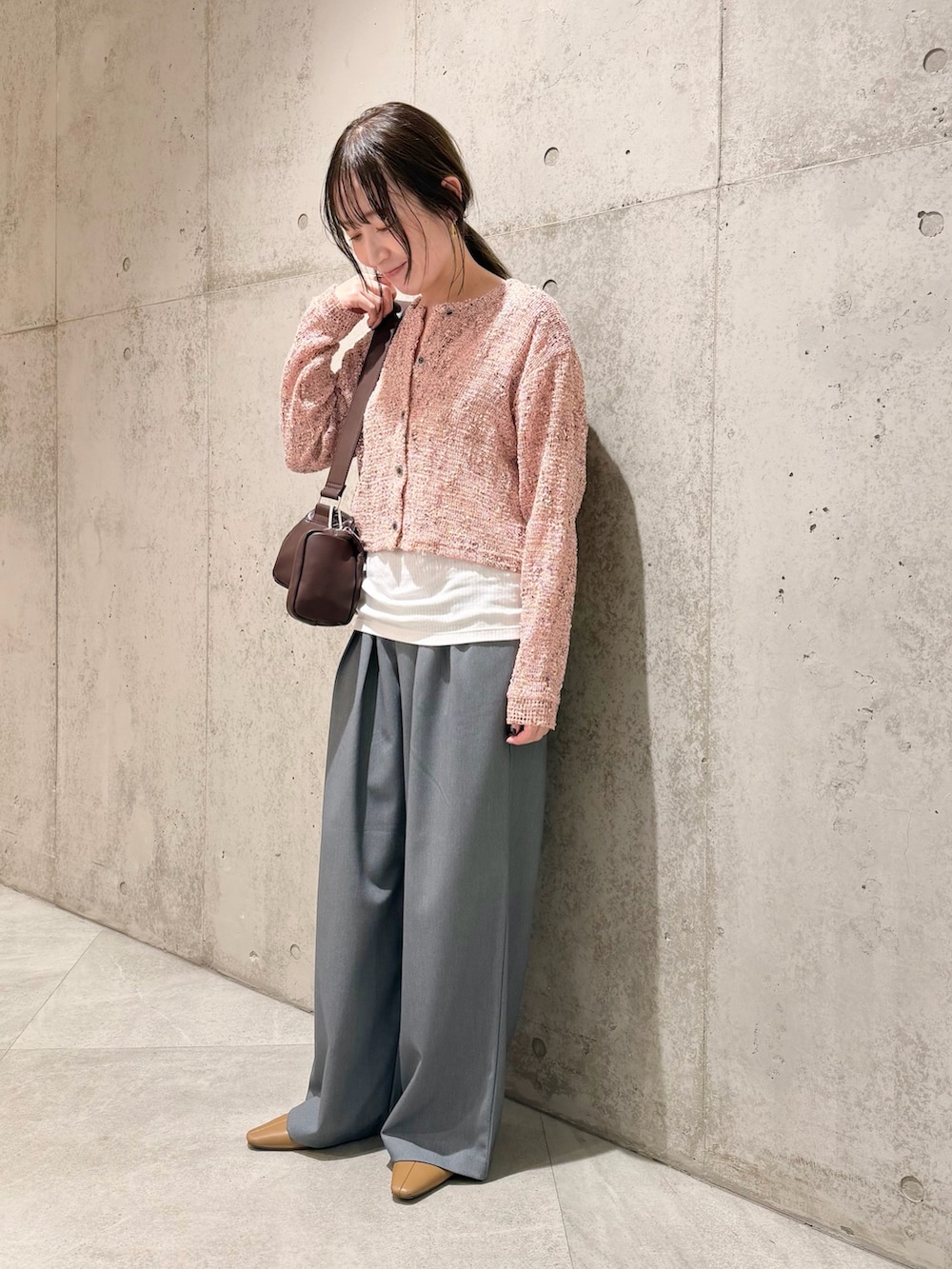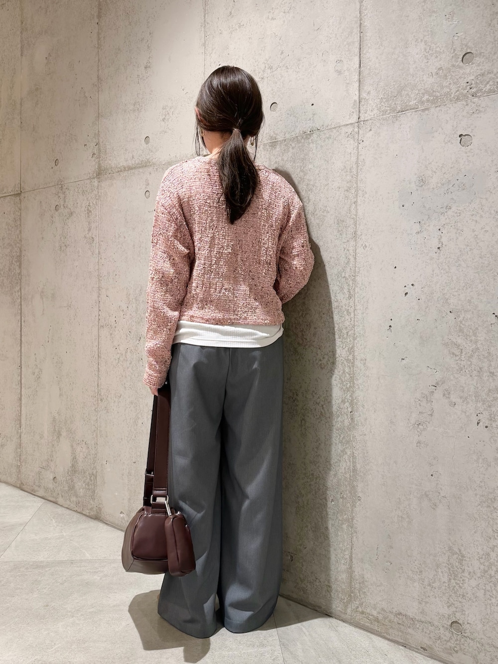 今回は、グレーのワイドパンツと合わせた、大人カジュアルコーディネートです。