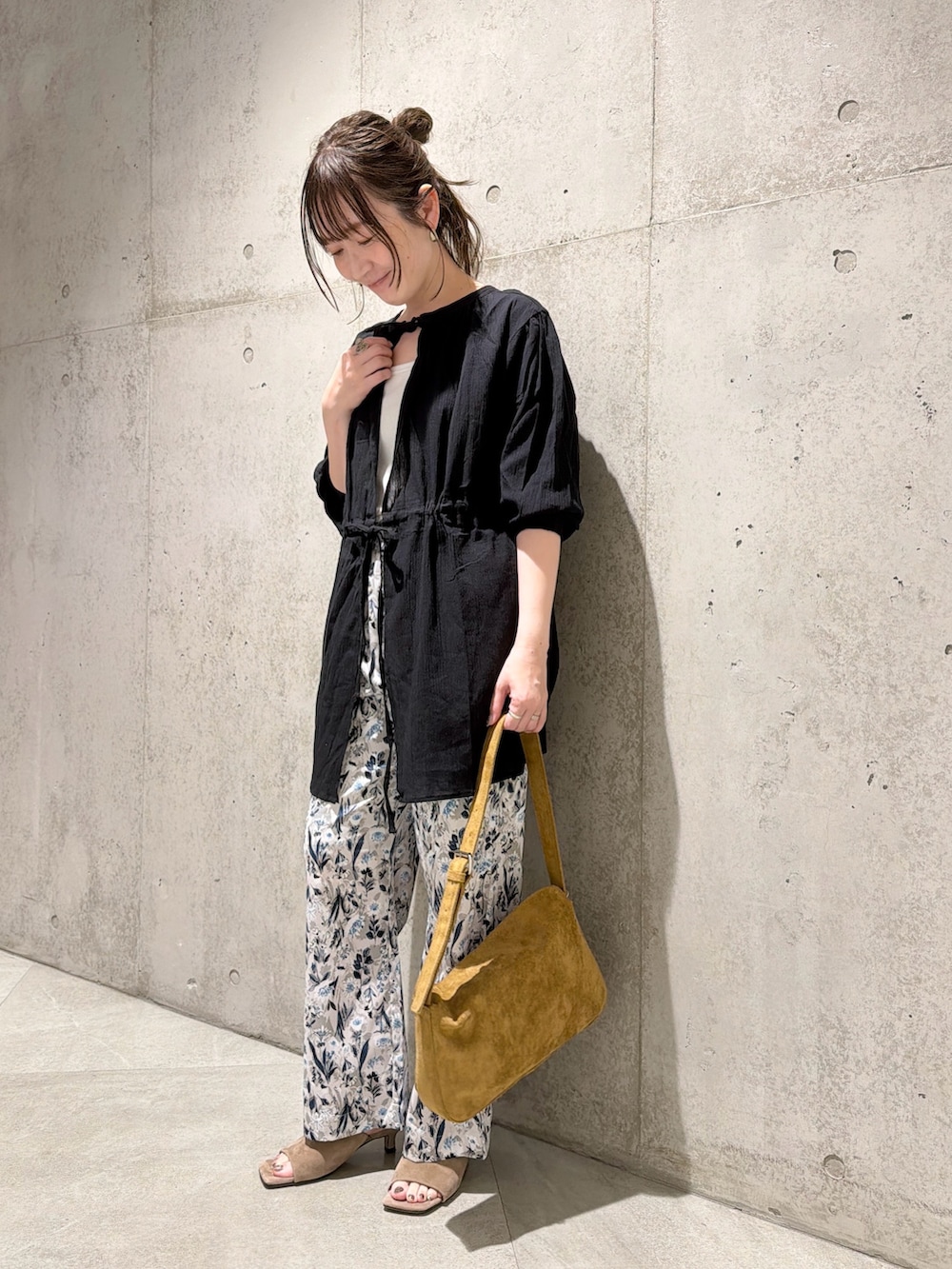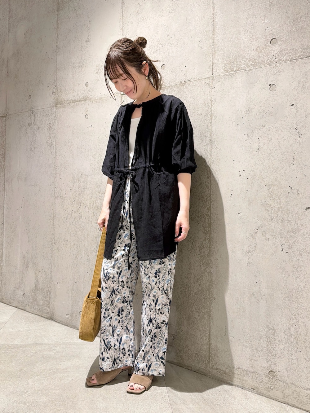 今回は、花柄のパンツで、華やかさをプラスしてみました。