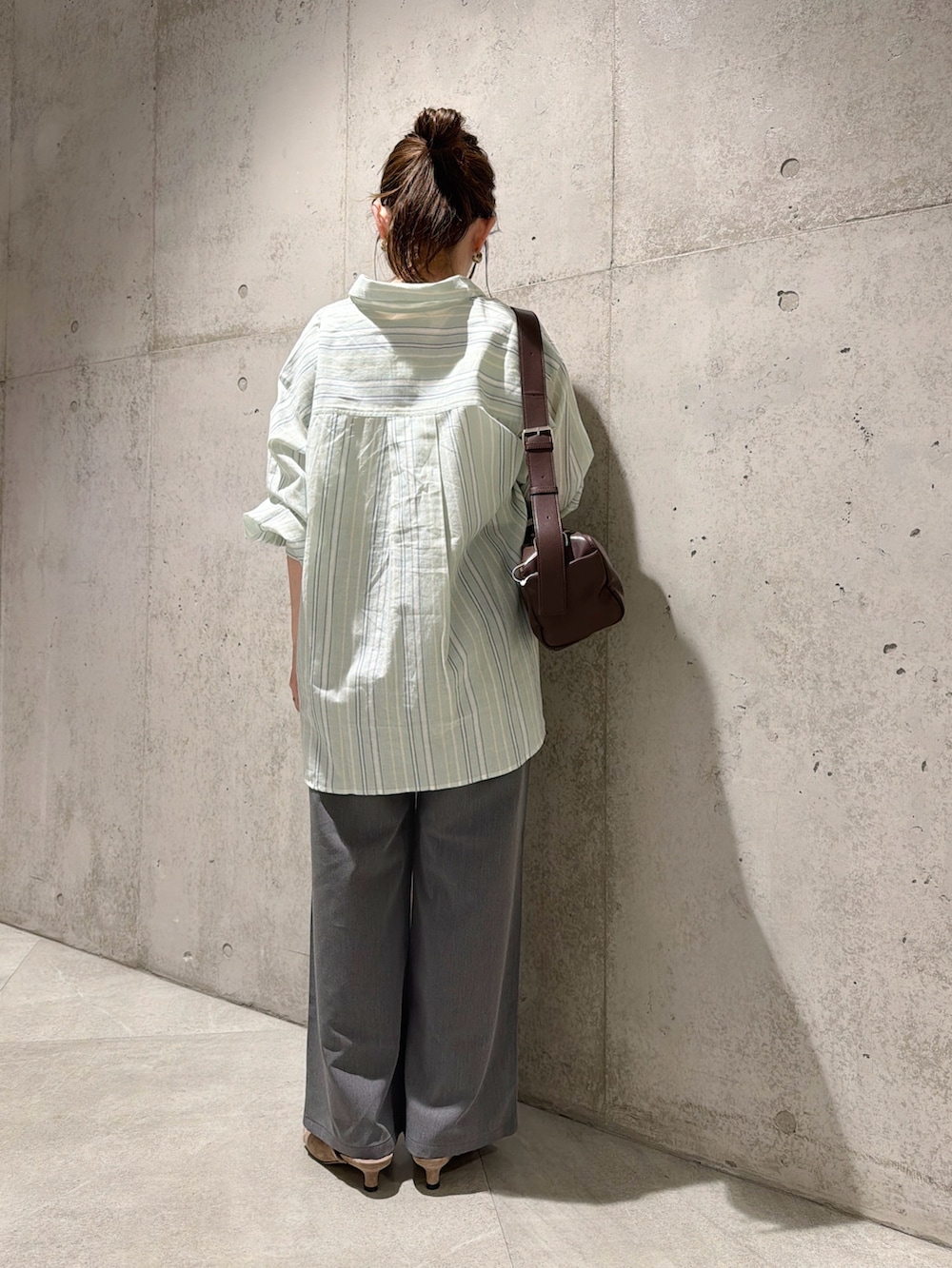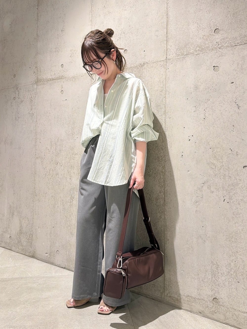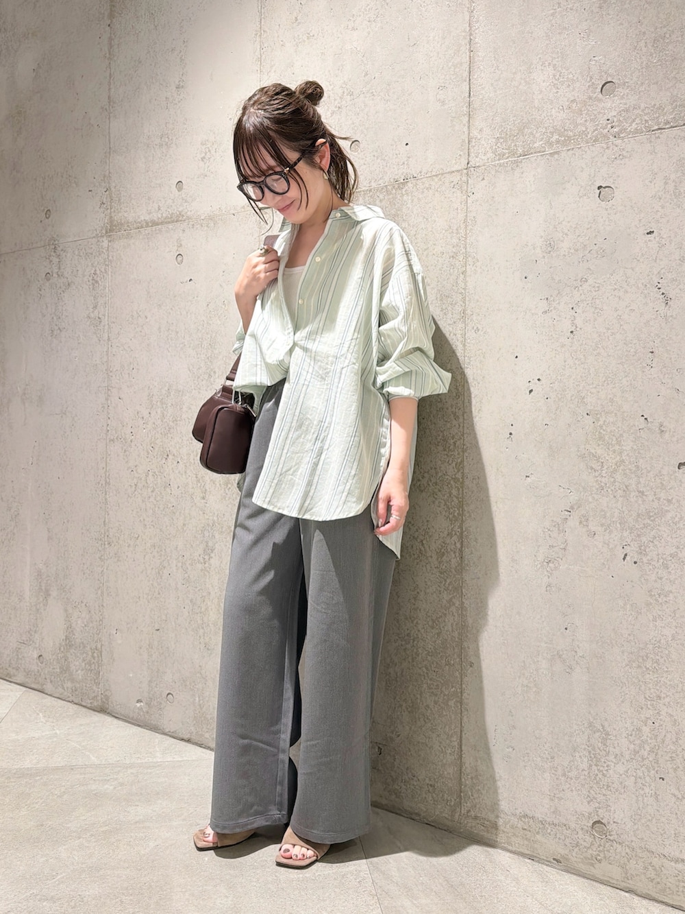今回は、オンオフで穿いていただける、シンプルなグレーのパンツを合わせたキレイめカジュアルコーディネートです。