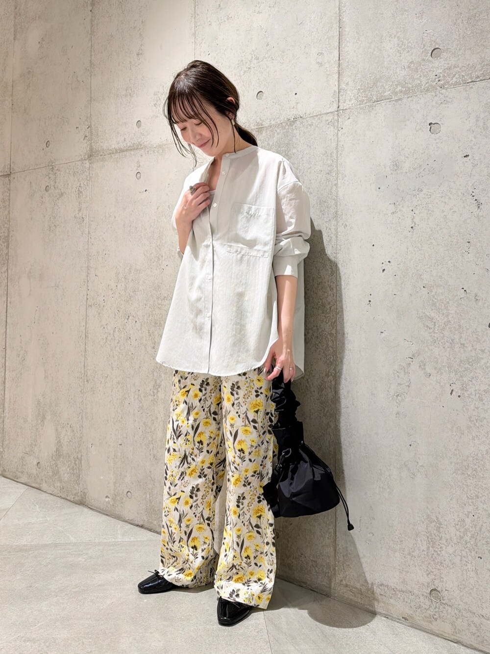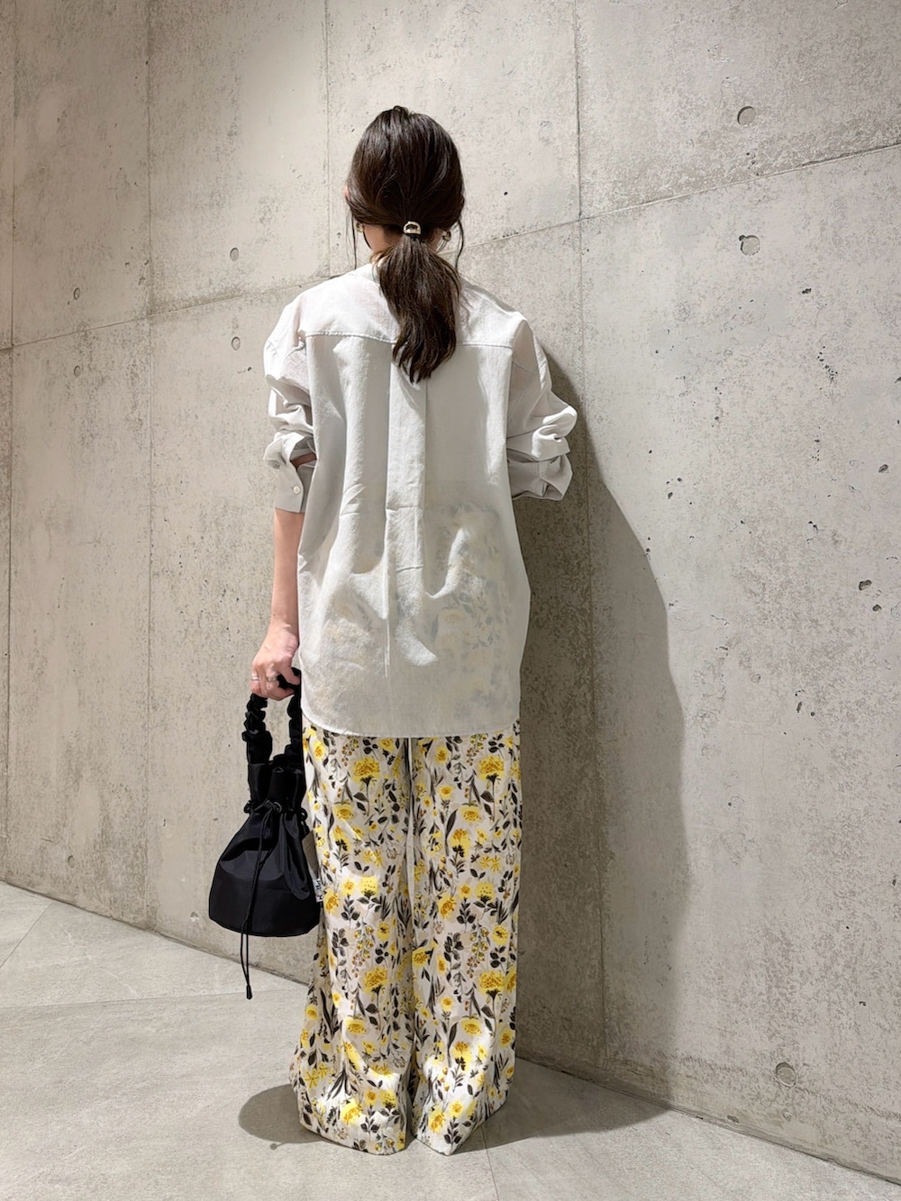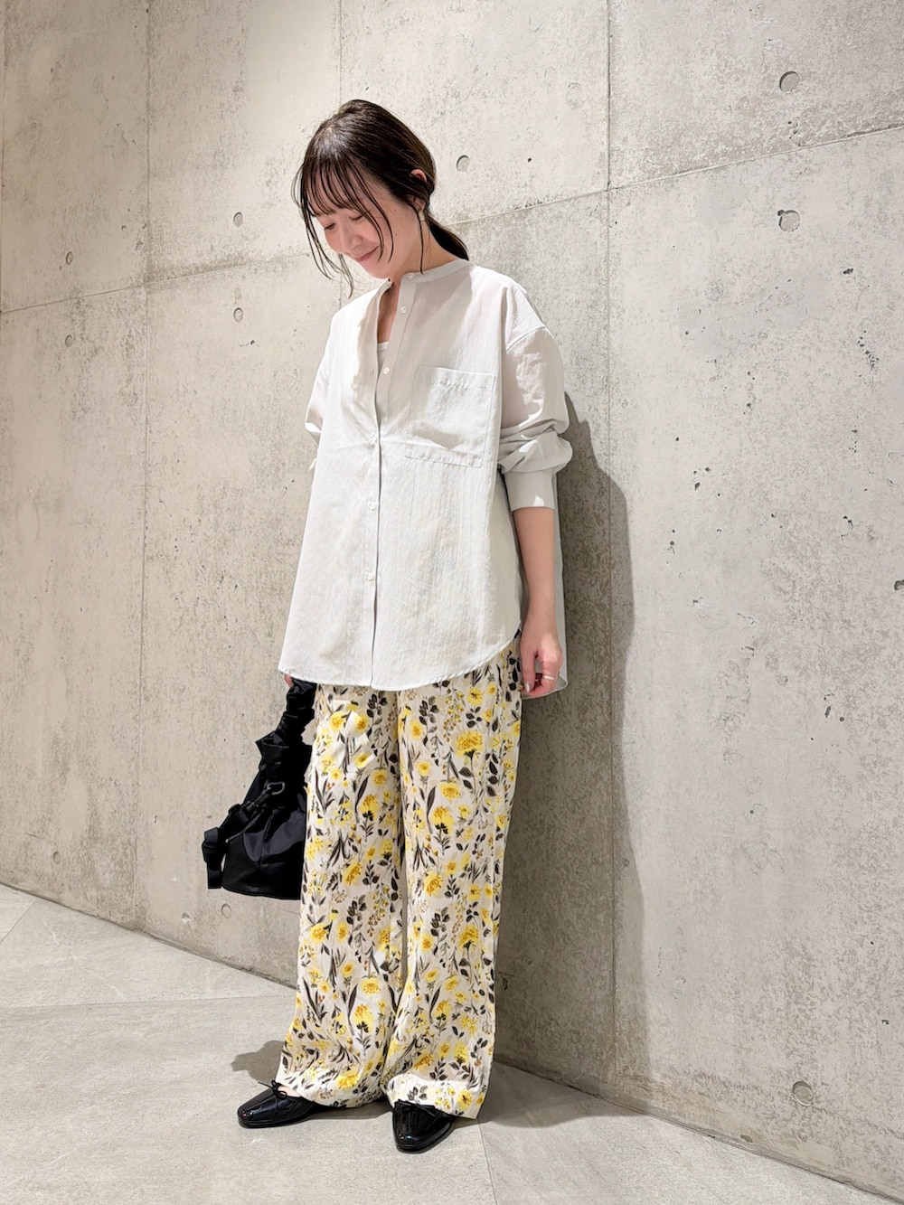 今回は、花柄のパンツをアクセントにした、大人カジュアルコーディネートです。