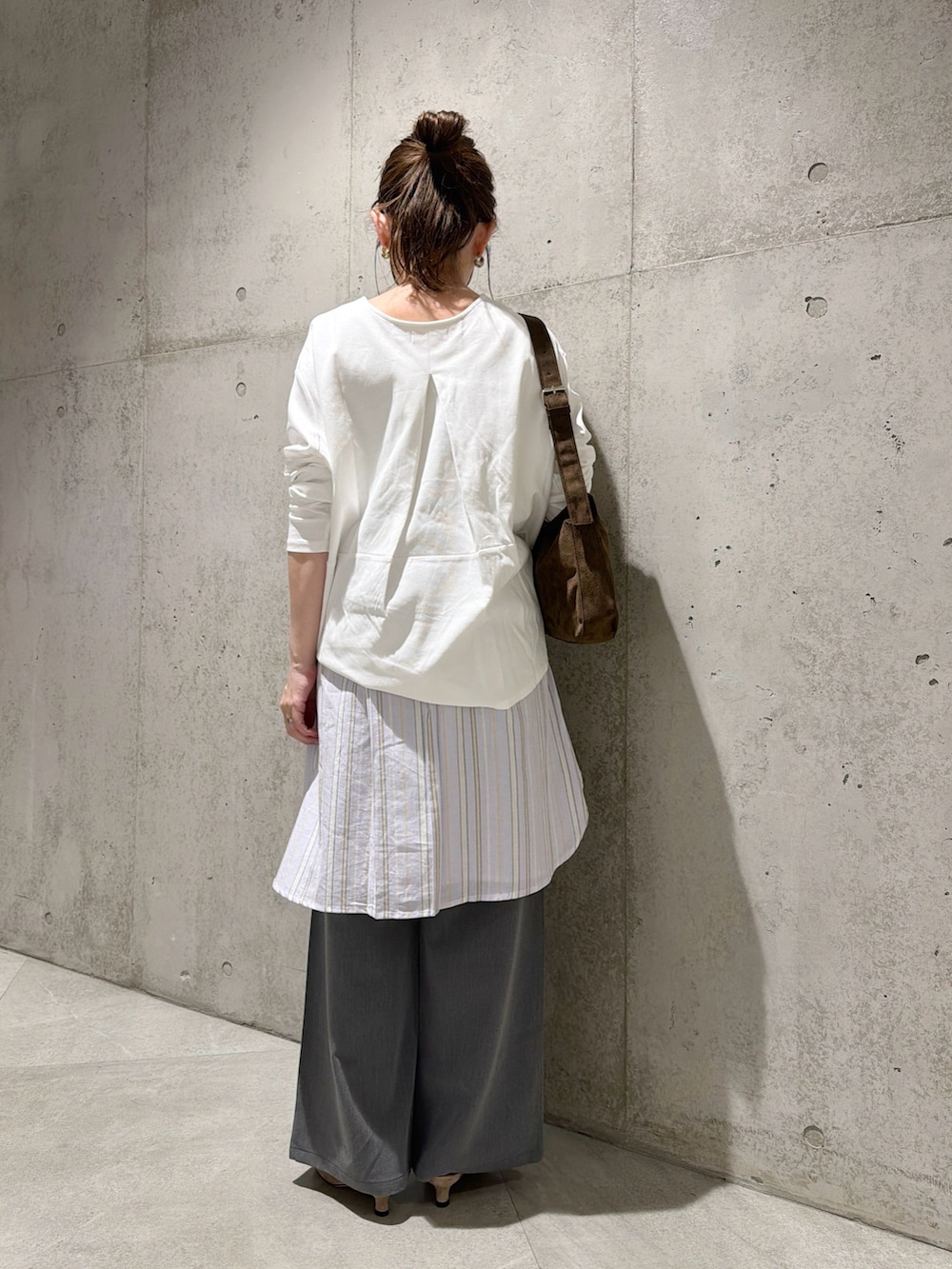 体型を拾わないゆとりのある身幅と、カットソー素材でラフな着心地ながら、きちんと感もあるシルエットが特徴です。