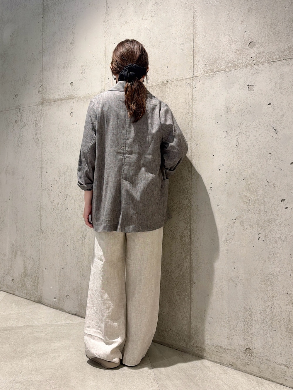 程よいシアー感と、リネン混の表情がある素材により大人な印象アイテム。