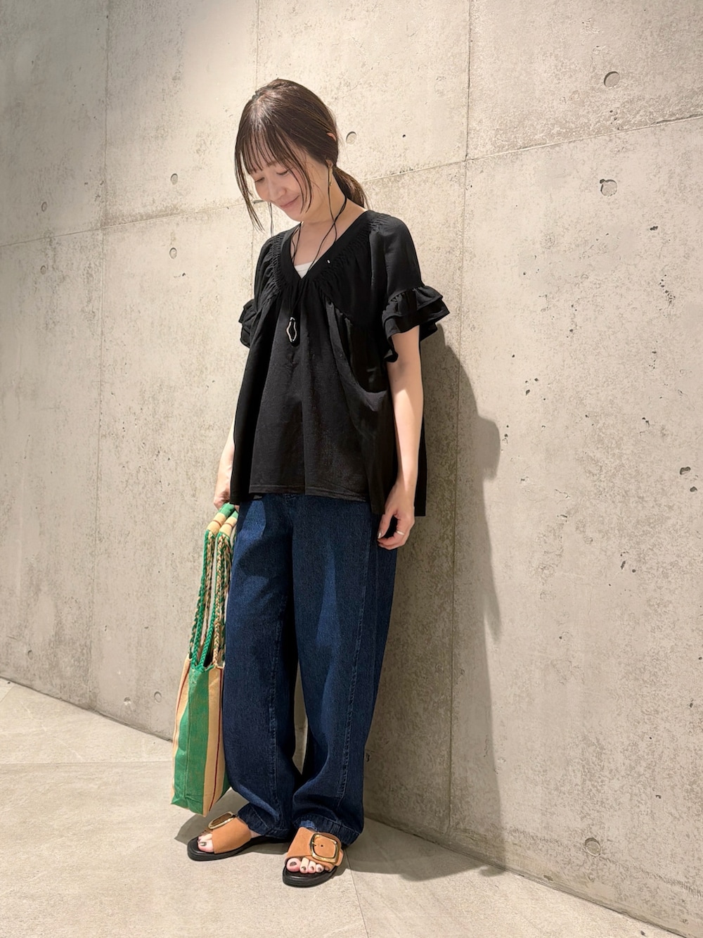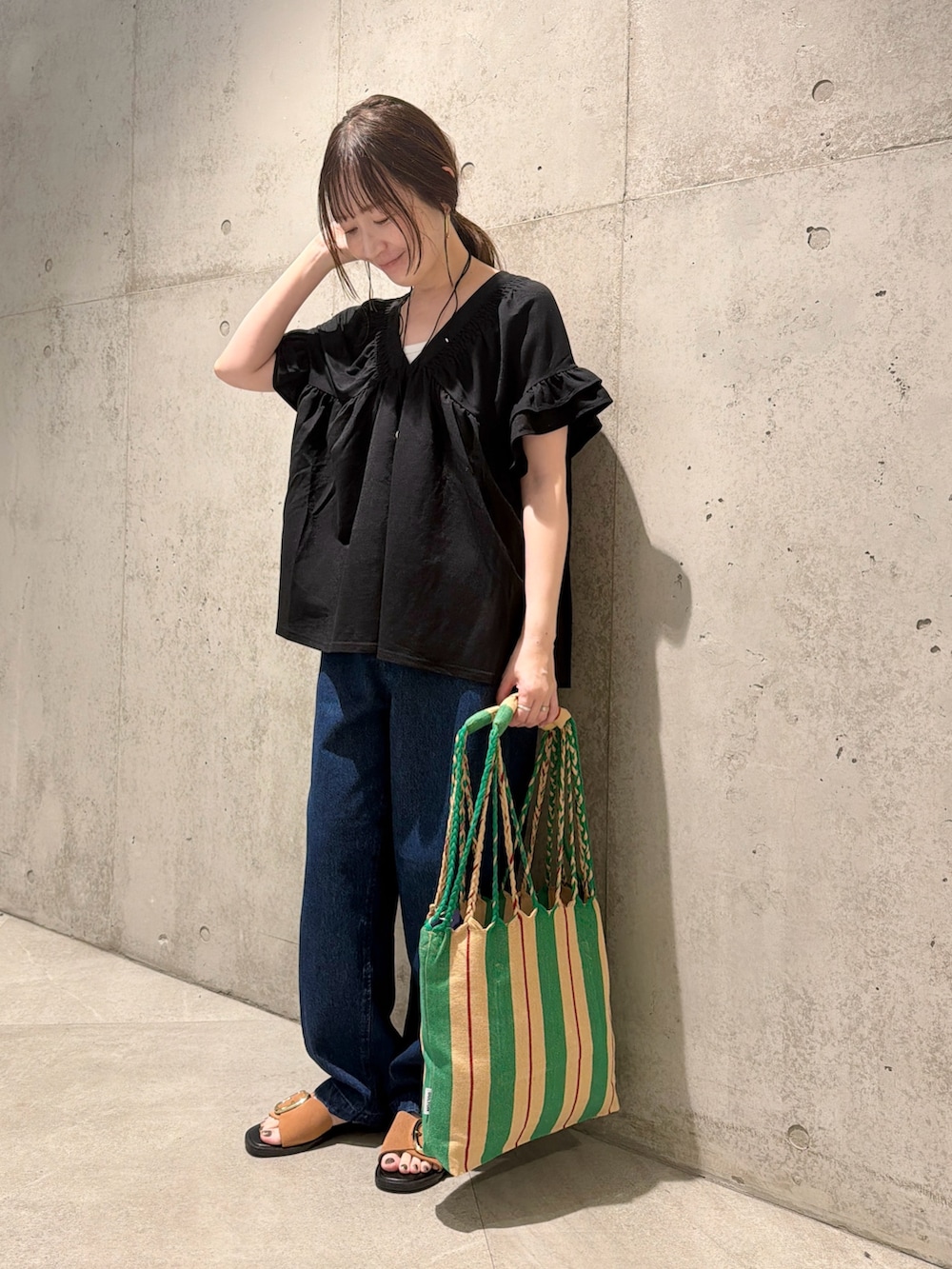 小物やサンダルで、初夏らしくしてみました。