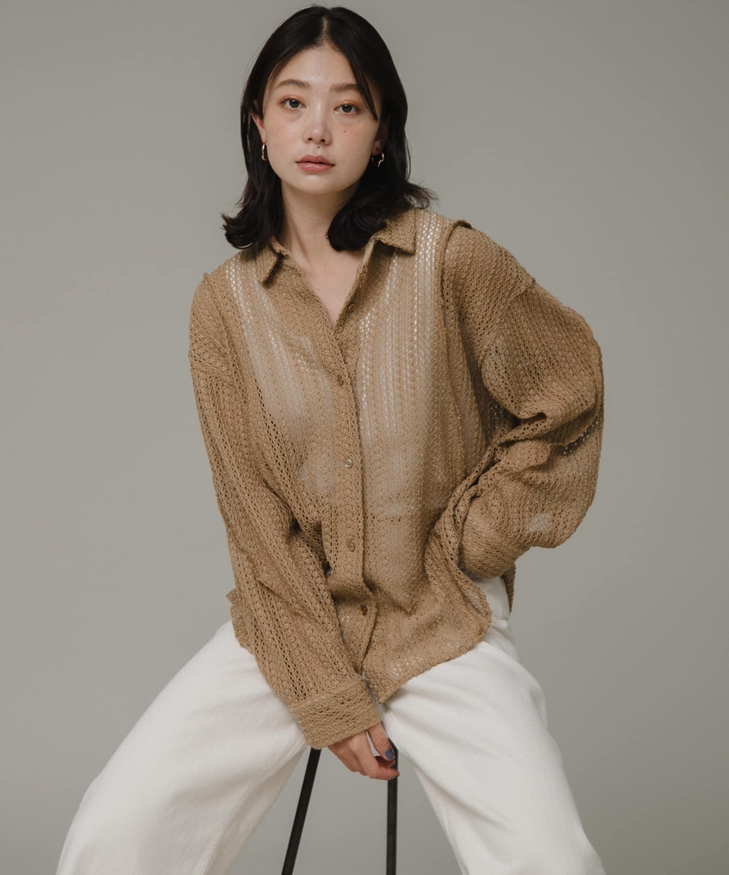 クロシェライクなカットソー素材がおしゃれな雰囲気を演出します。