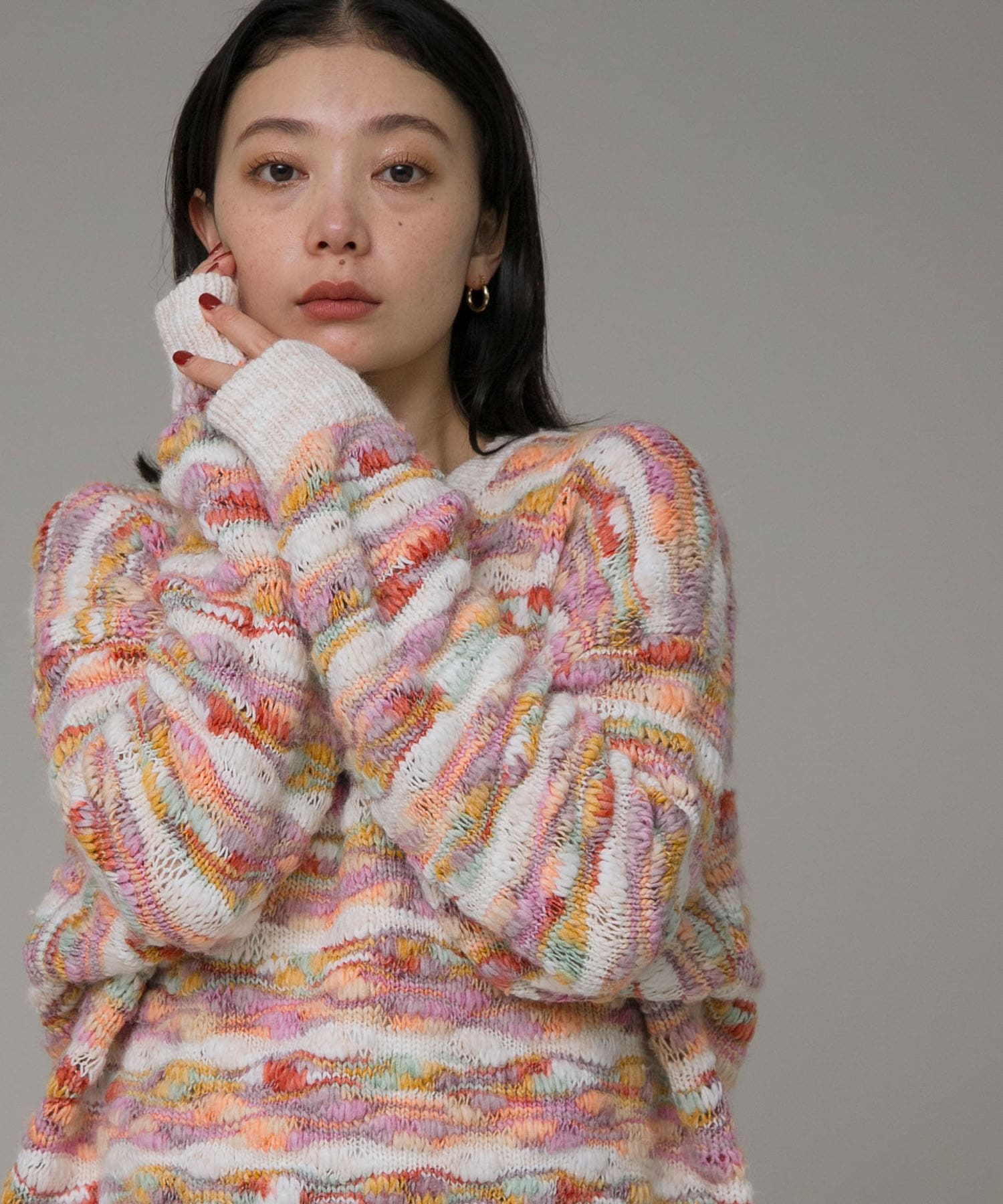 今回は、カラフルなニットを差し色にした大人カジュアルコーディネート。