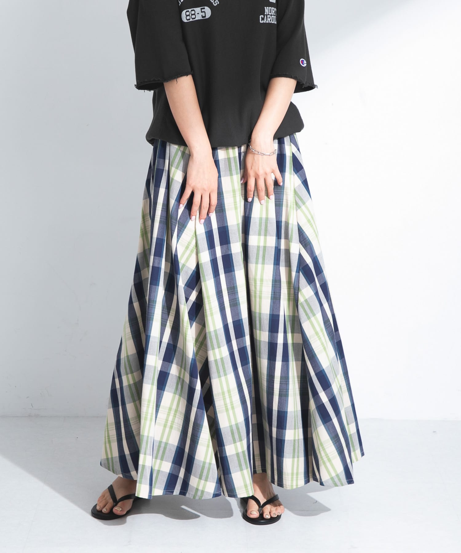 今回は、チェック柄のロングスカートと合わせた、大人カジュアルコーディネートです。