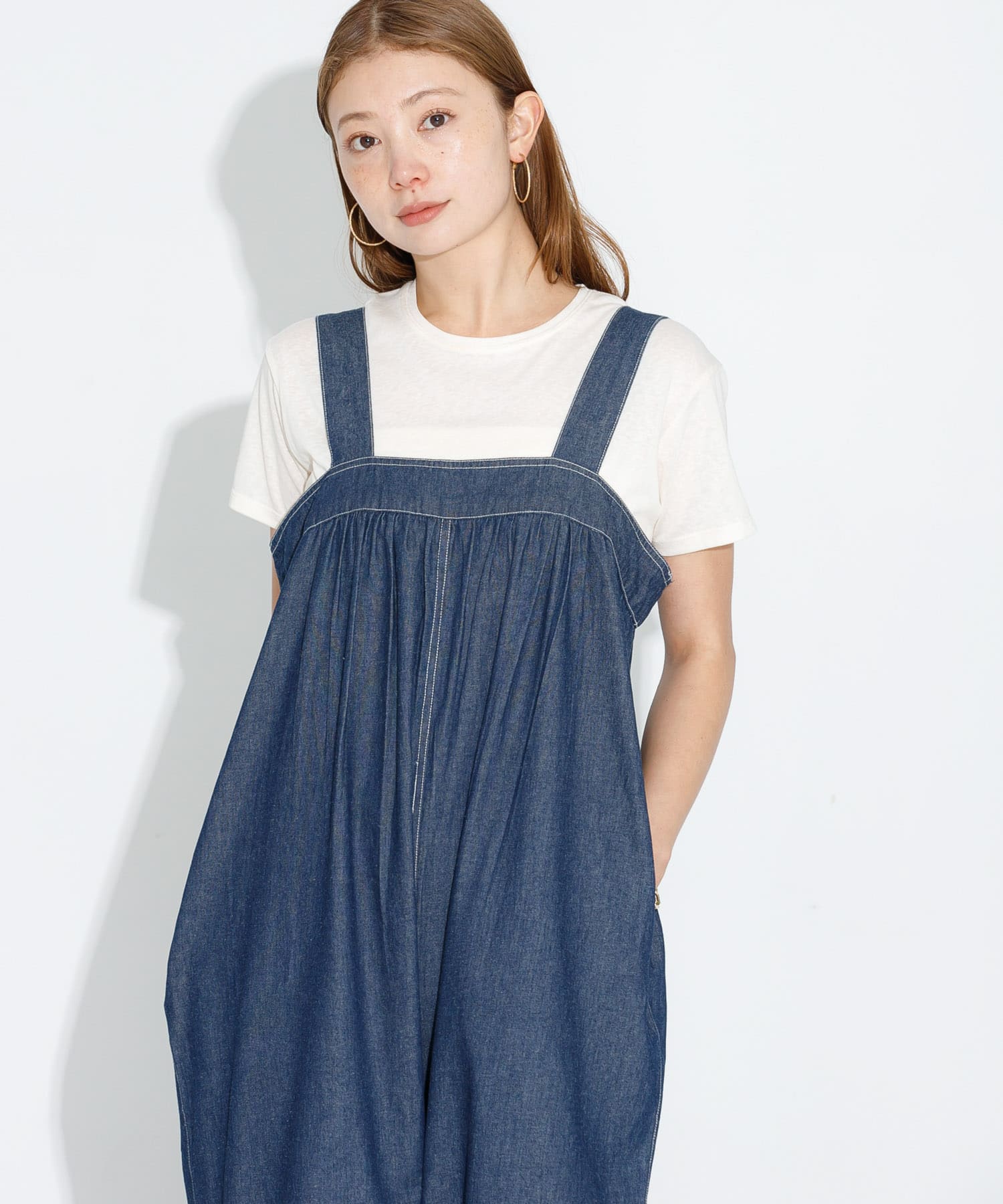 今回は、デニムのサロペットを合わせた、カジュアルスタイル。