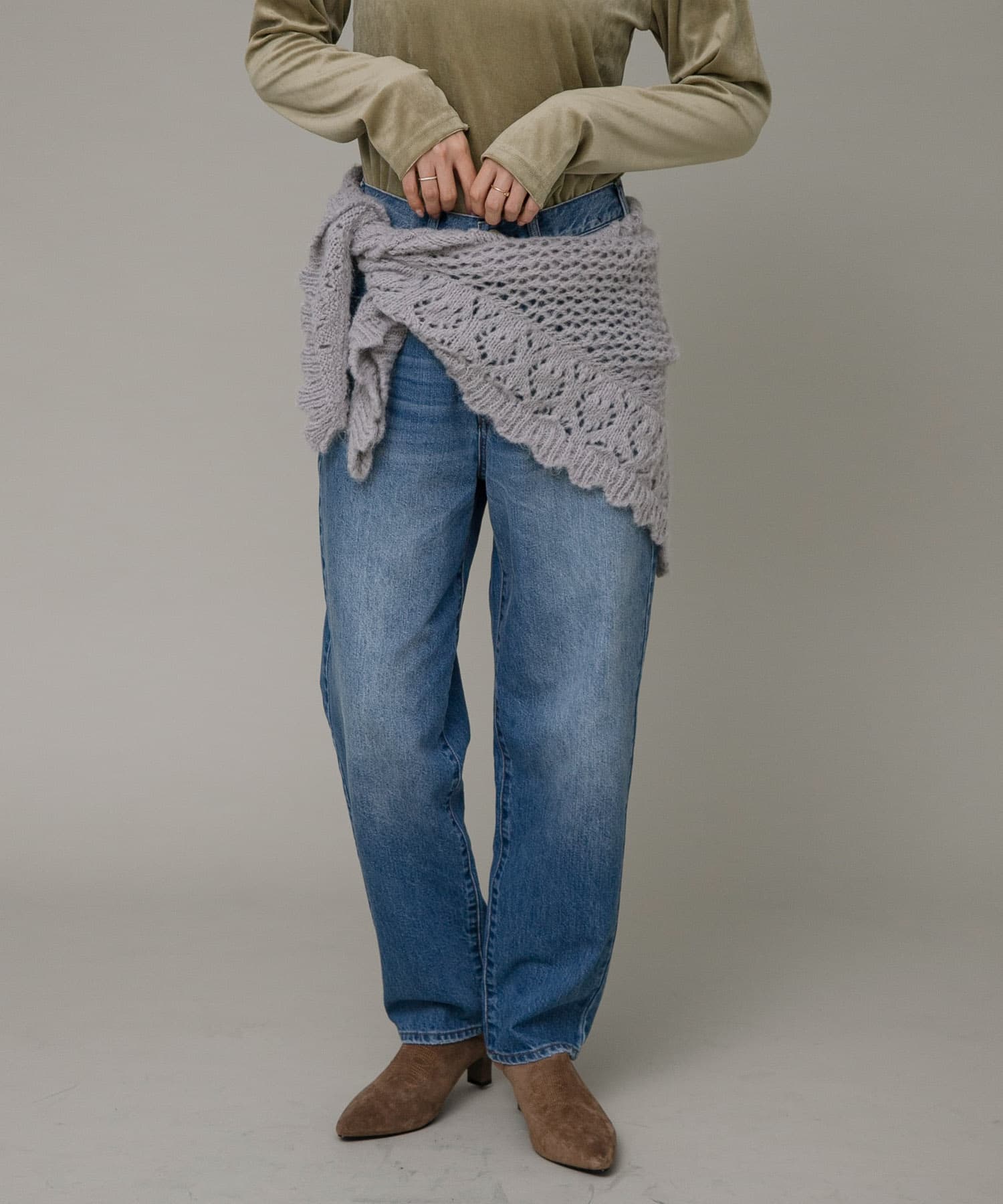 ニットのストールをアクセントに。
