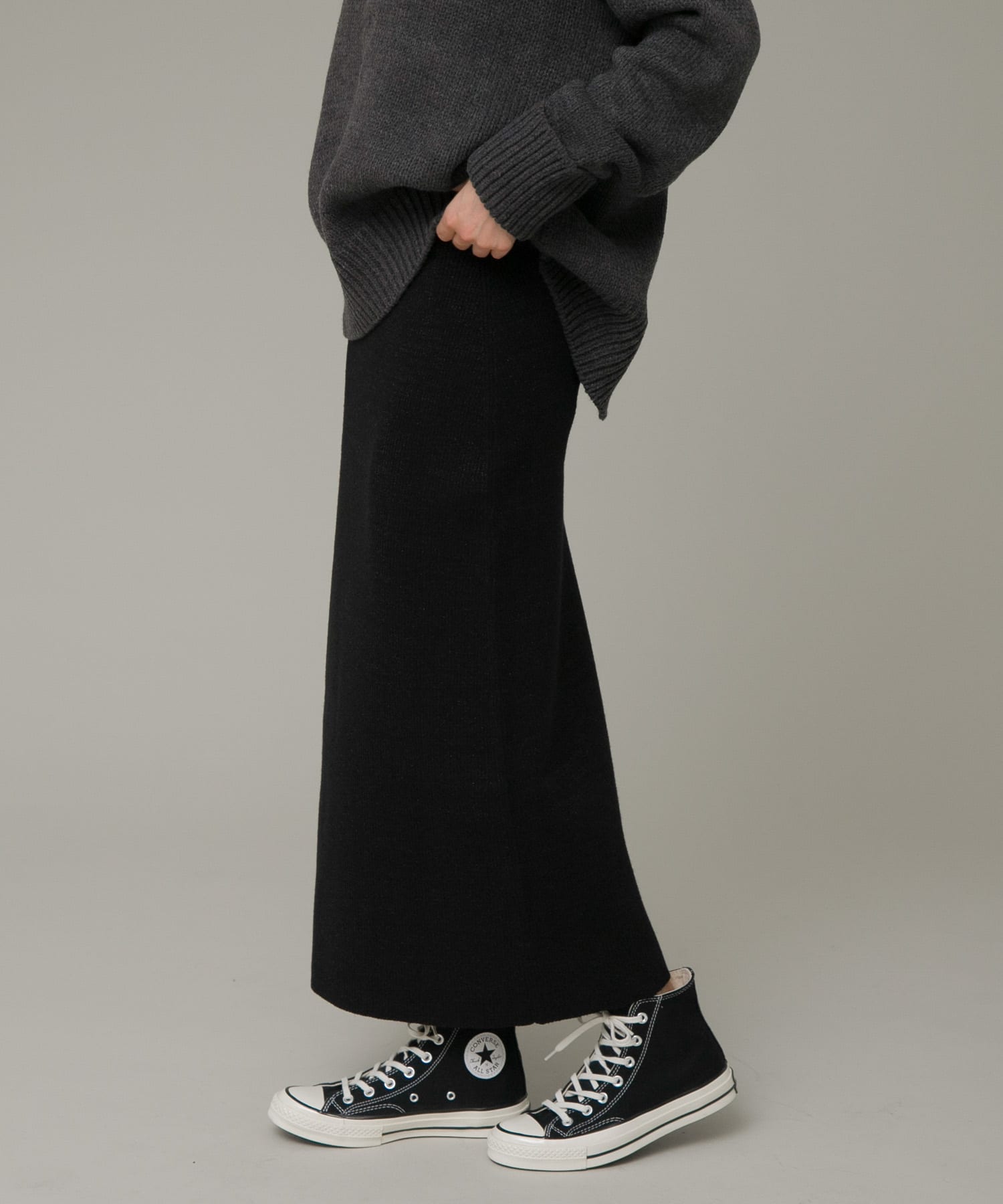 今回は、スウェットにニットスカートを合わせた、大人カジュアルコーディネートです。