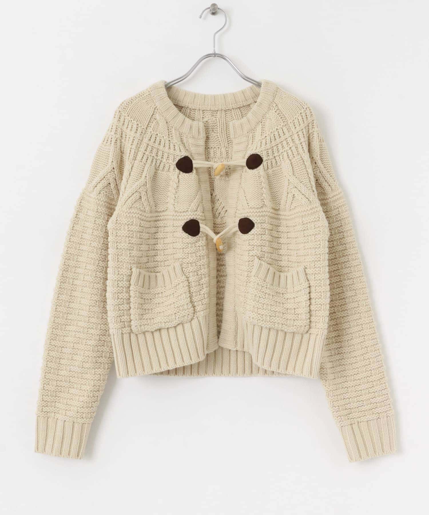 ケーブルMIX柄とトグル釦の、ヴィンテージ古着のようなデザインがポイントです。