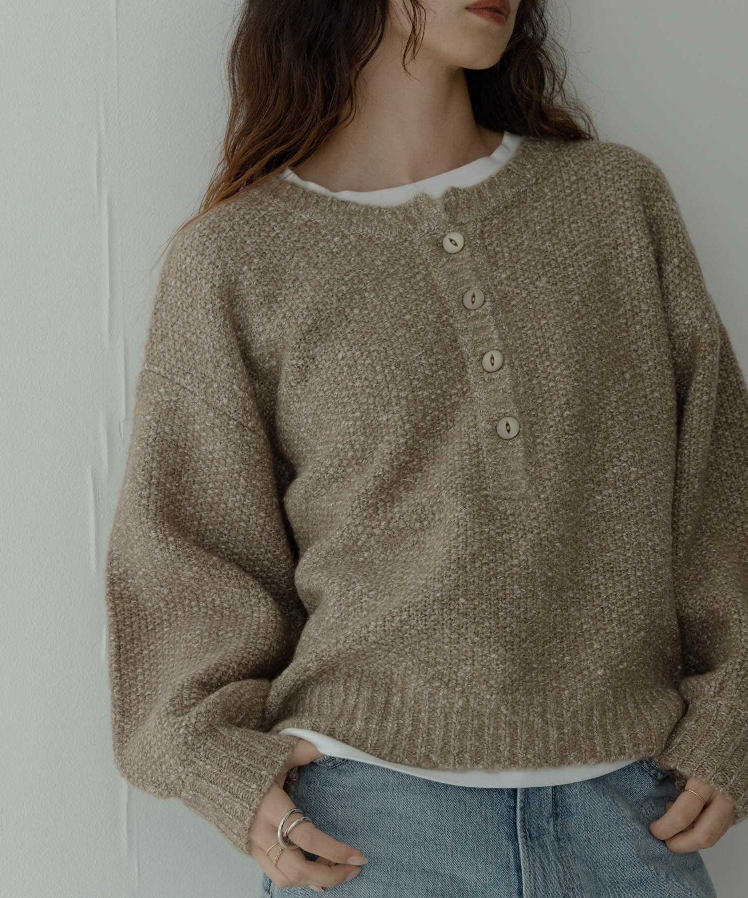 Sonny Labelヘンリーネックニットプルオーバー- 着用カラー: