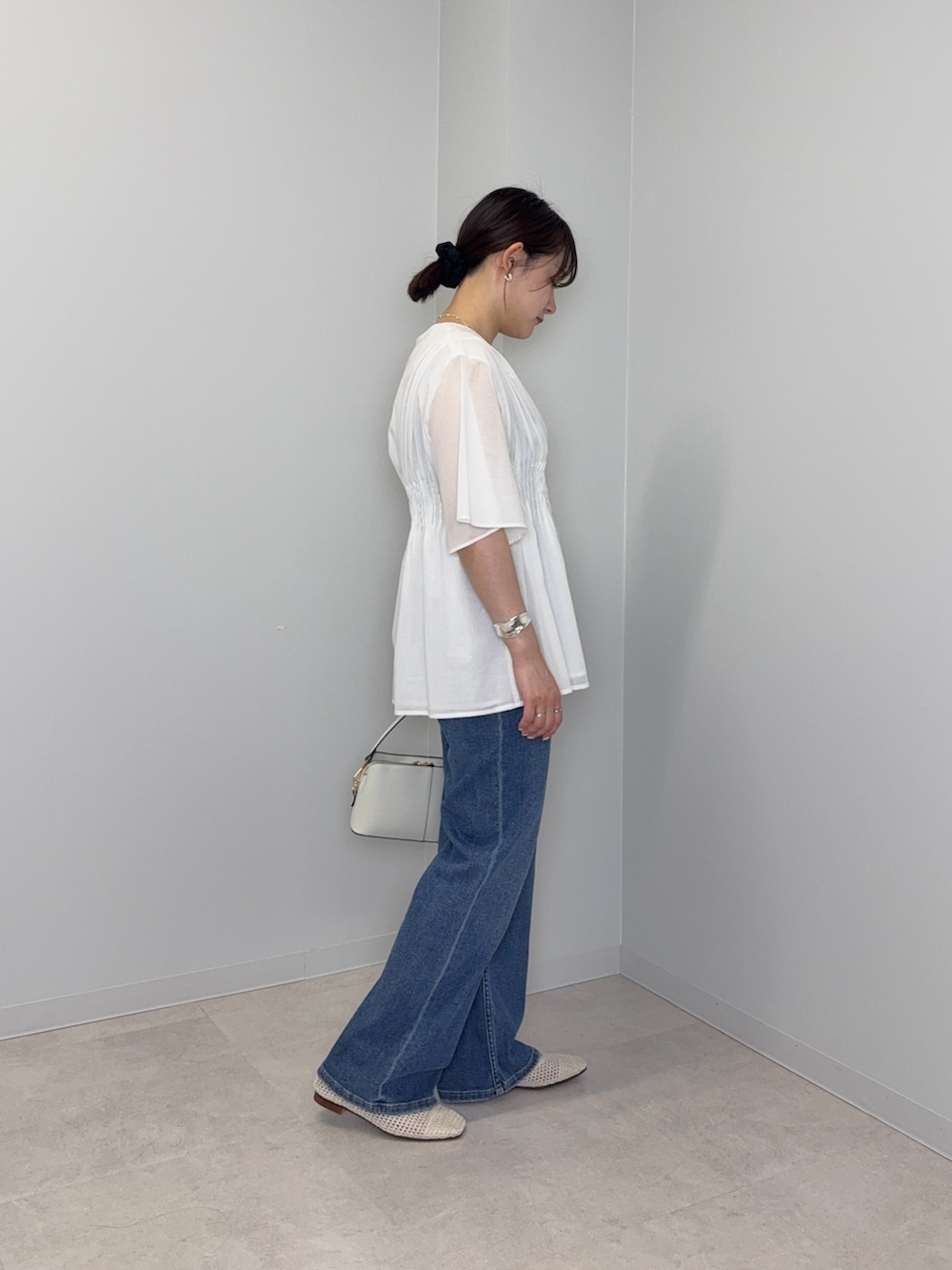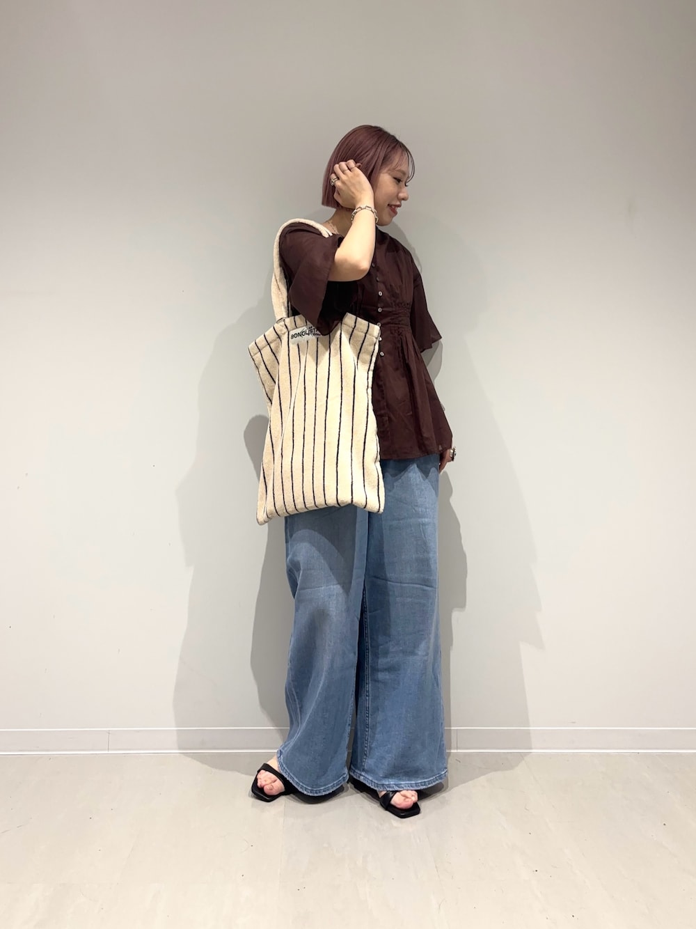 ボトムはストレートシルエットの綿麻デニムを✨ストレッチがしっかり効くので楽ちん!