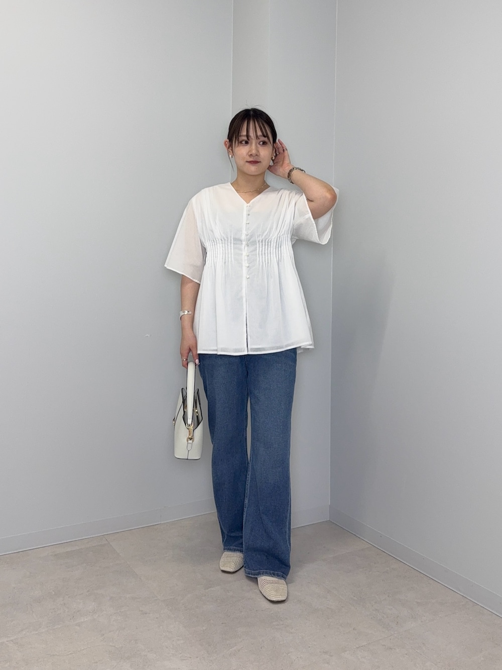 URBAN RESEARCHコットンボイルタックデザインブラウス- 着用カラー: