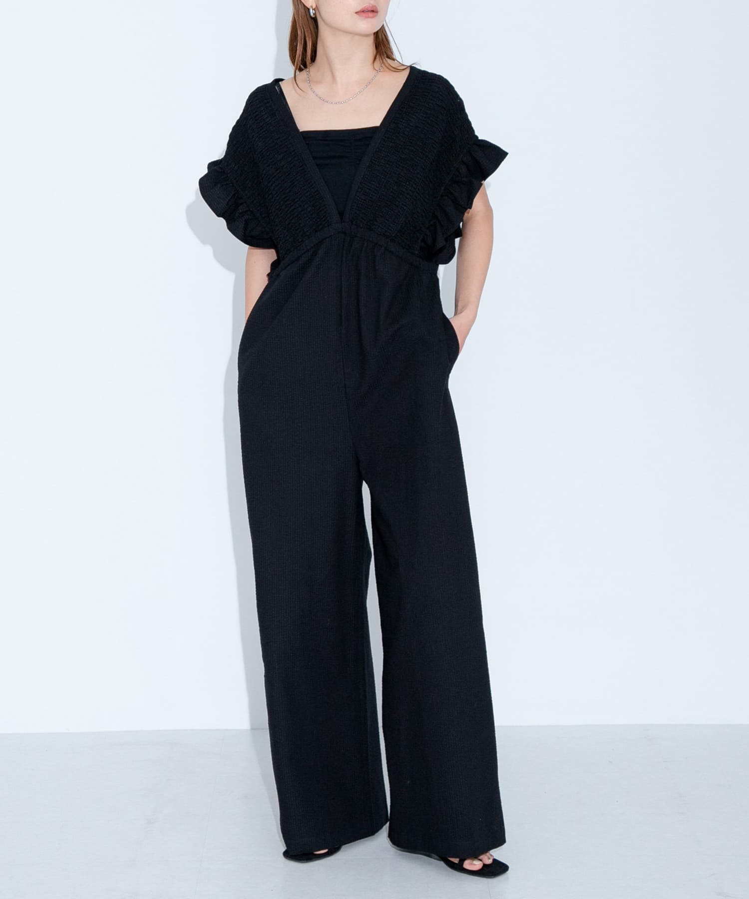 フリルのデザインが可愛いオールインワンで