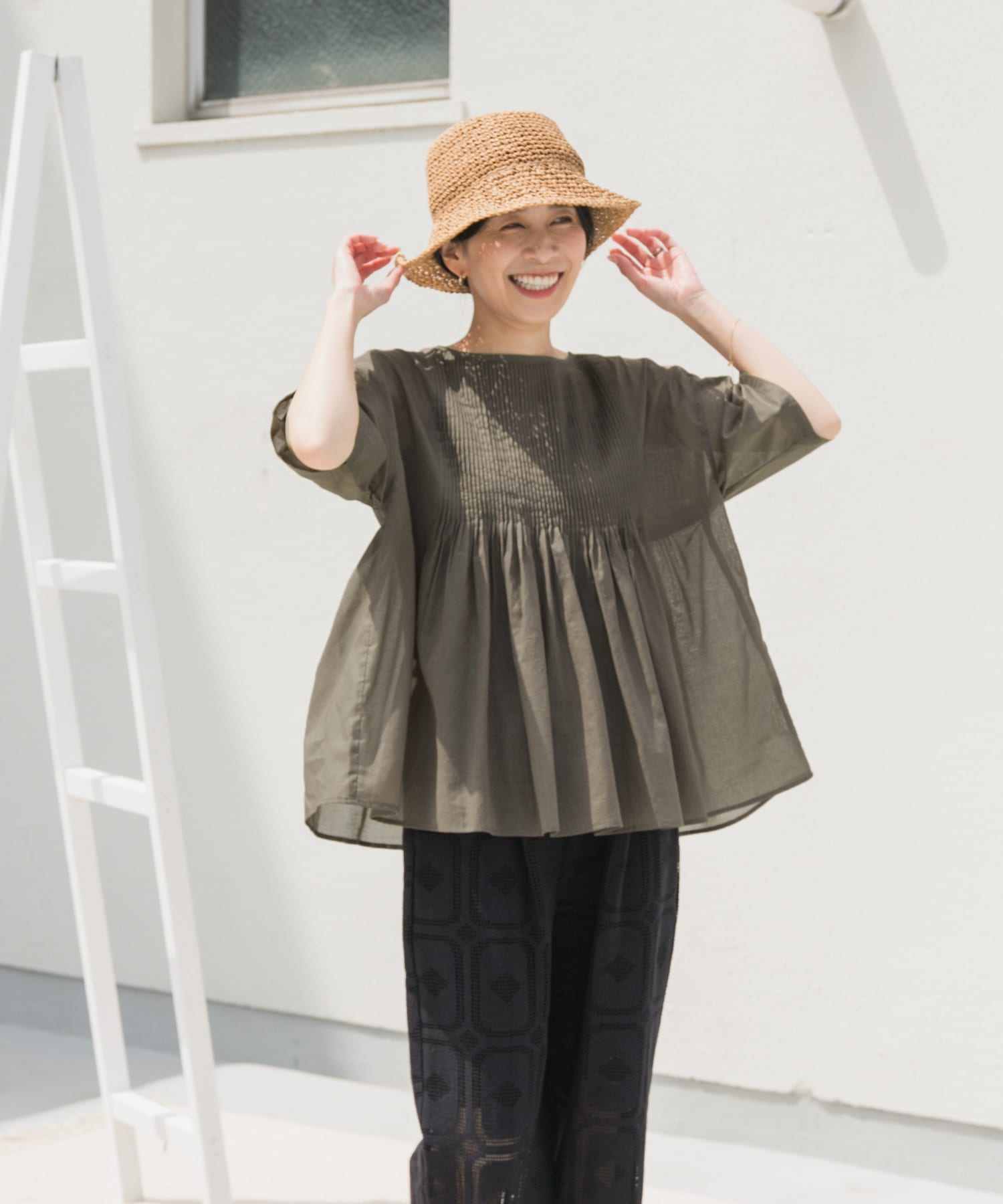 DOORSの安定のブラウスには定番のリネンイージーパンツを合わせナチュラルな装いに‼︎