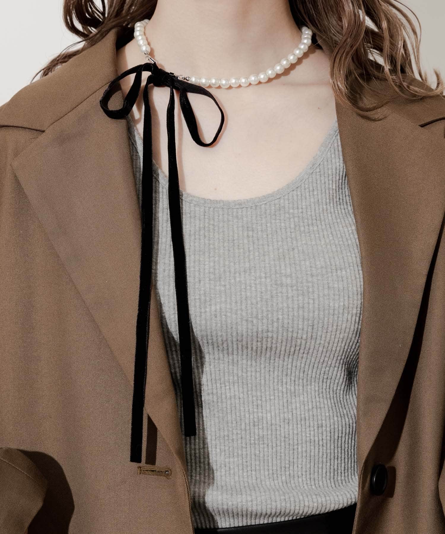 SMELLYベロアリボンパールネックレス- 着用カラー: