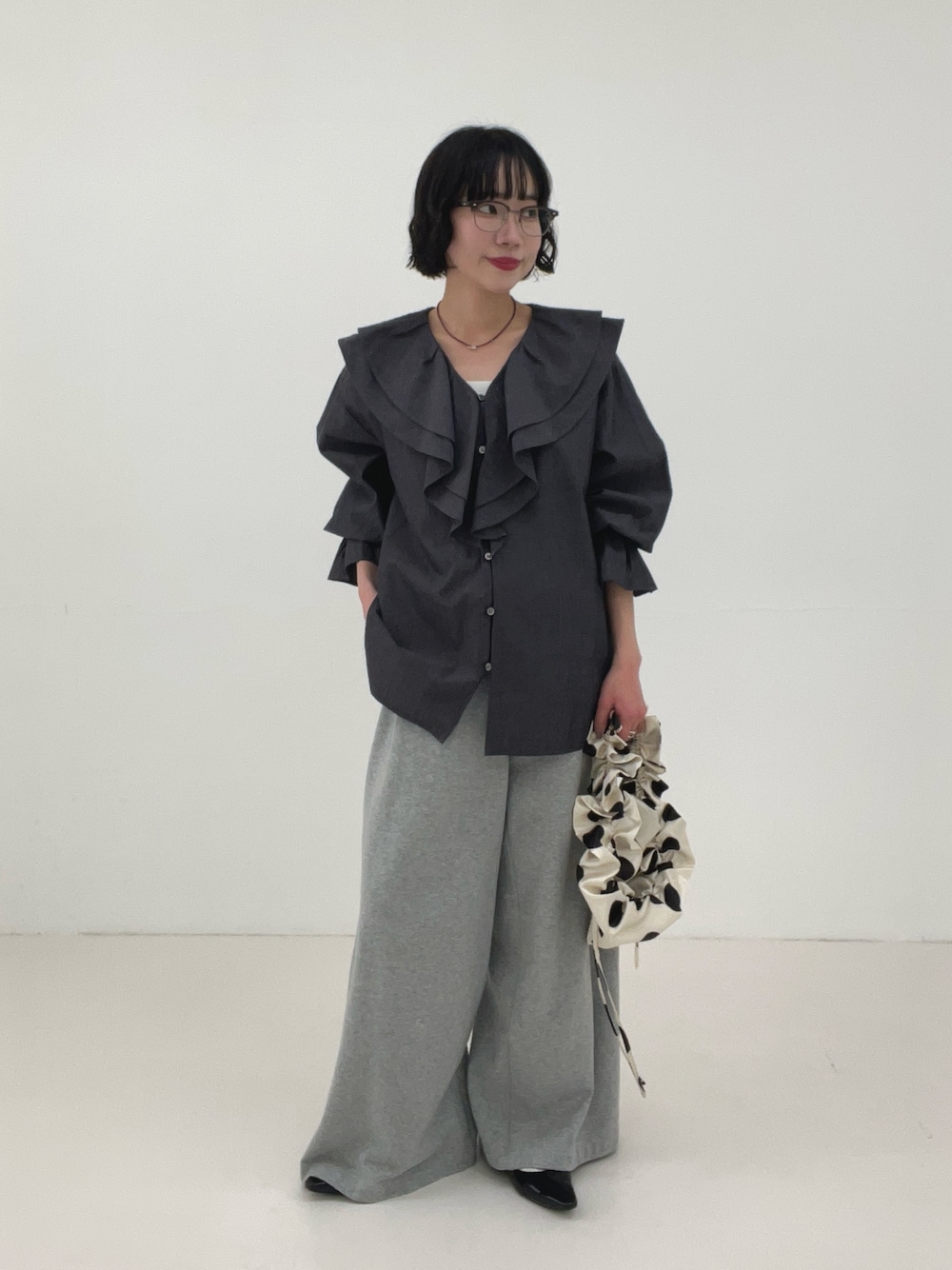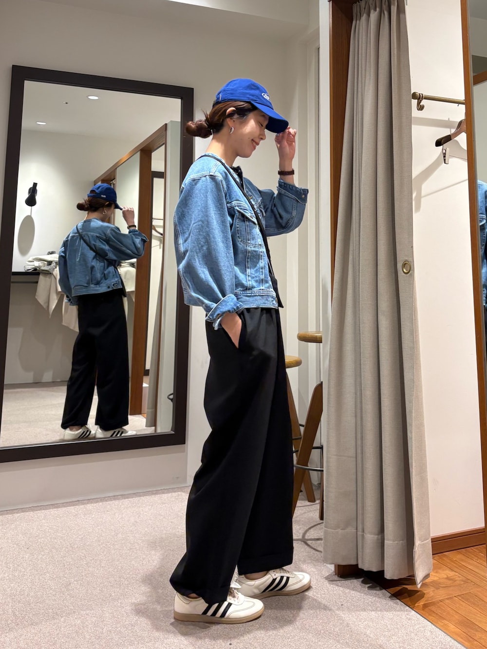 黒いボトムと合わせても馴染みます。