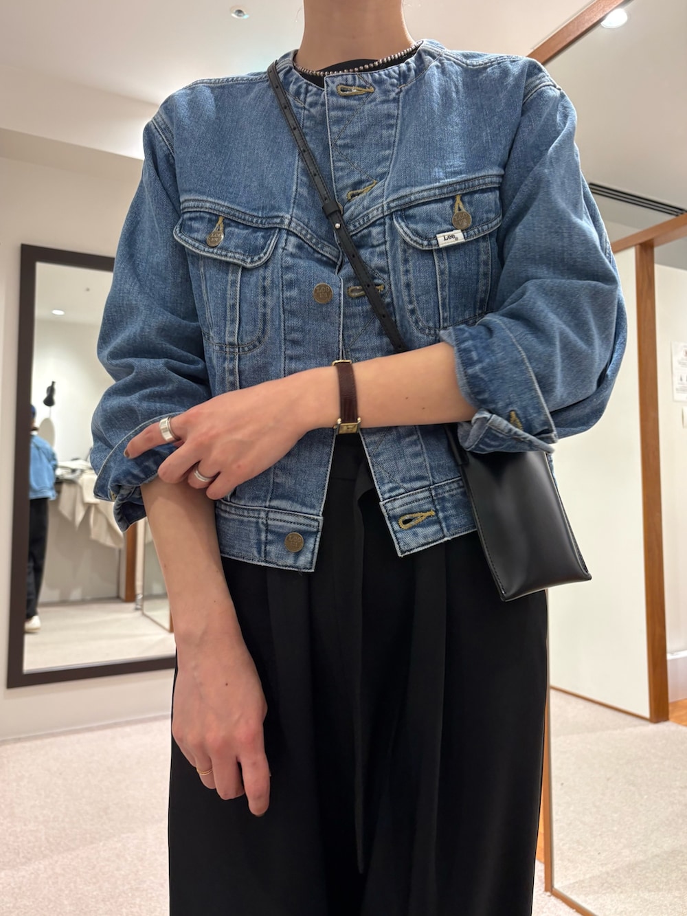 ノーカラーなので普通のデニムブルゾンより