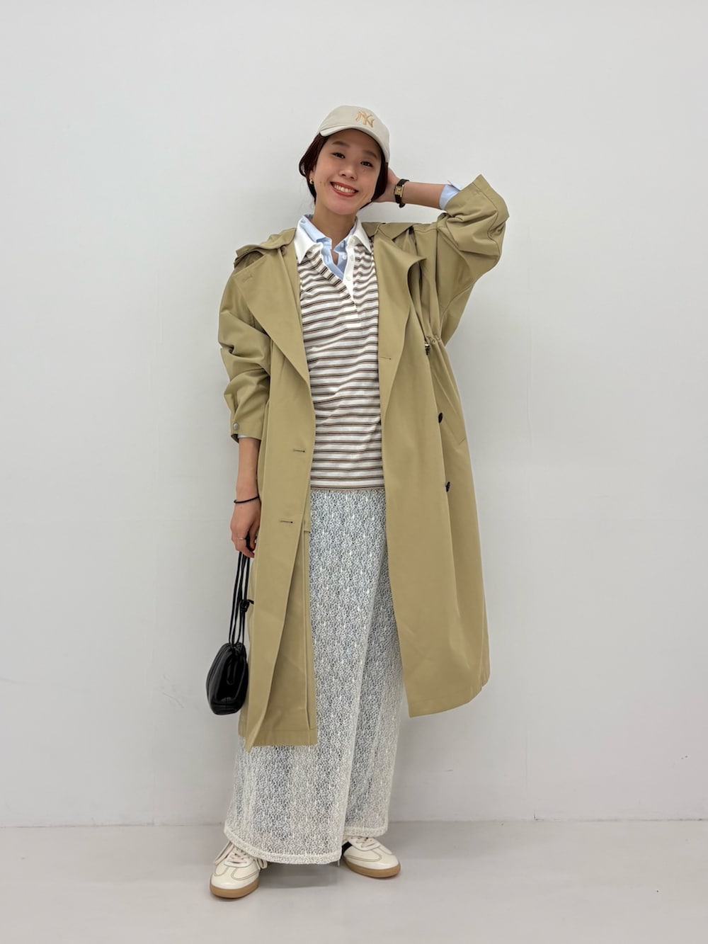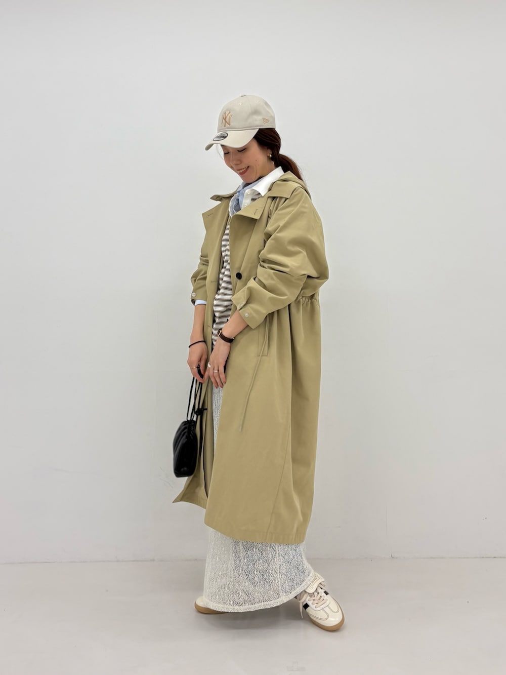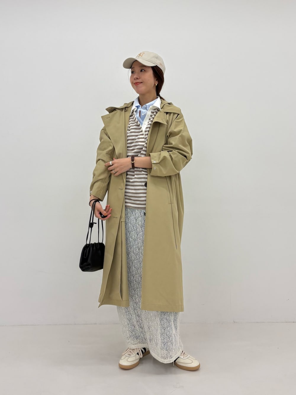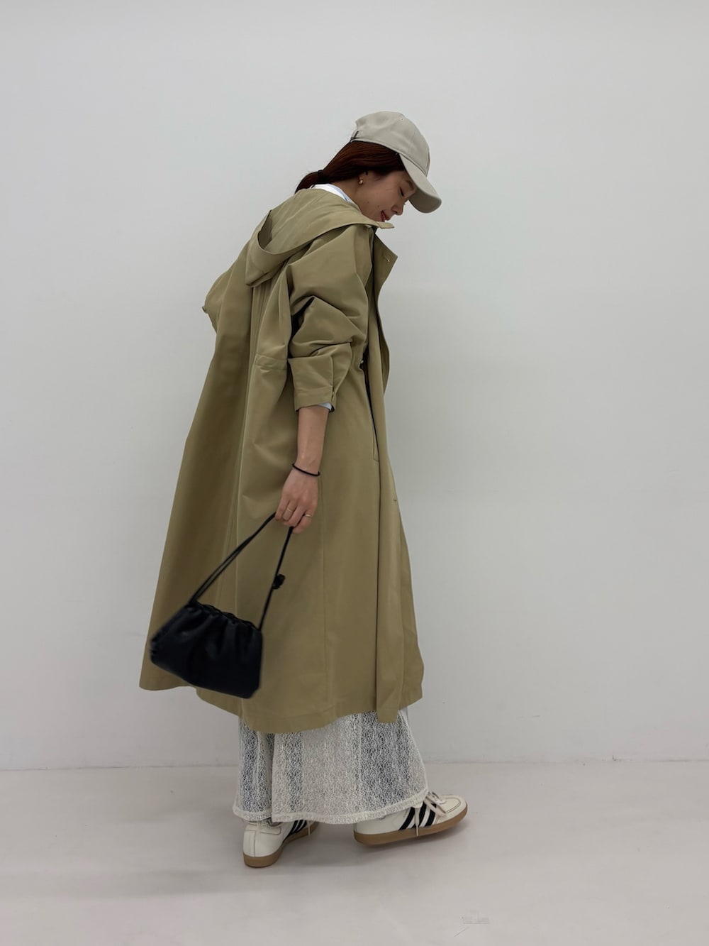 外すと普通のトレンチコートのような雰囲気で