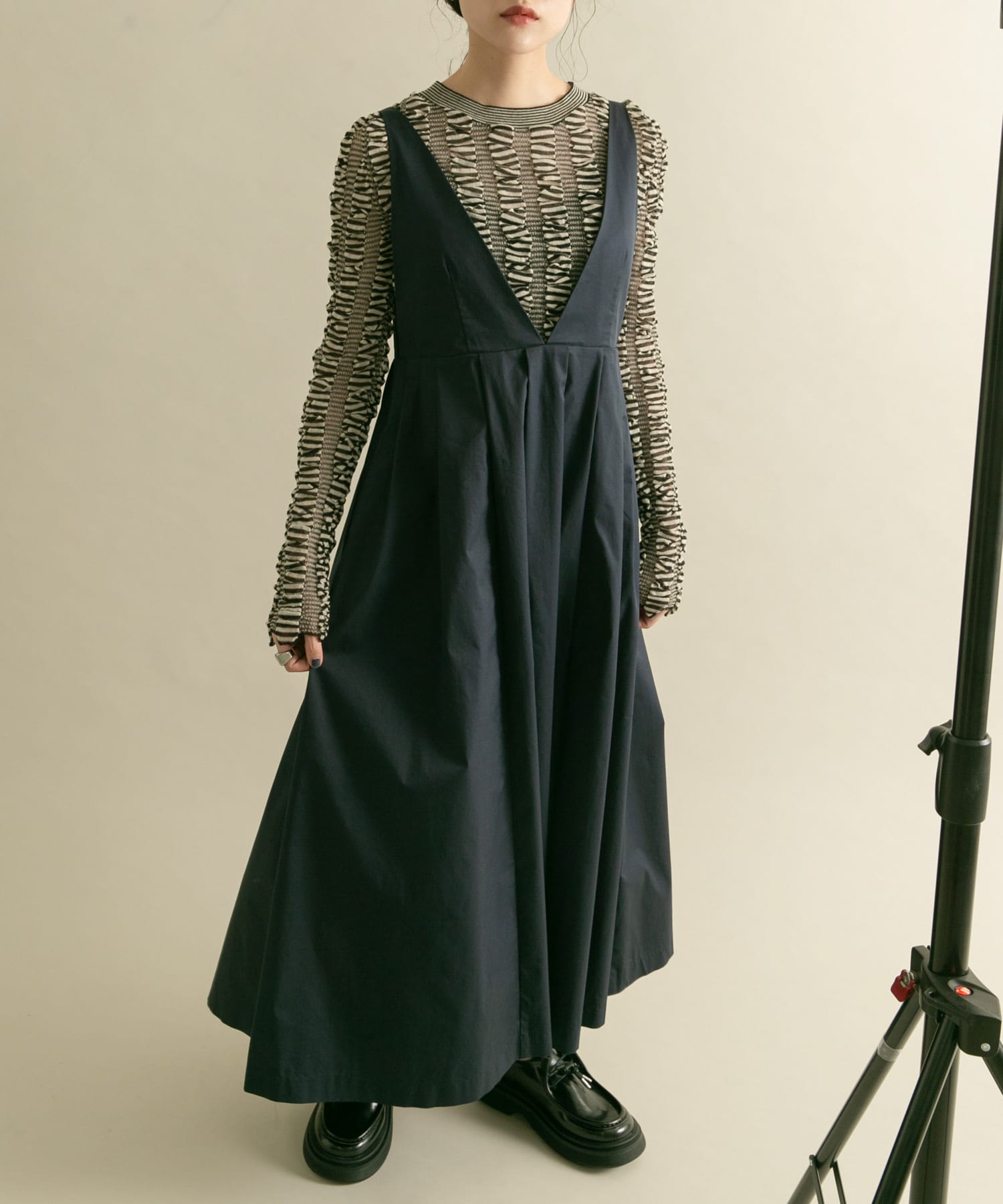 『2サイズ展開』ディープネックジャンパースカート
