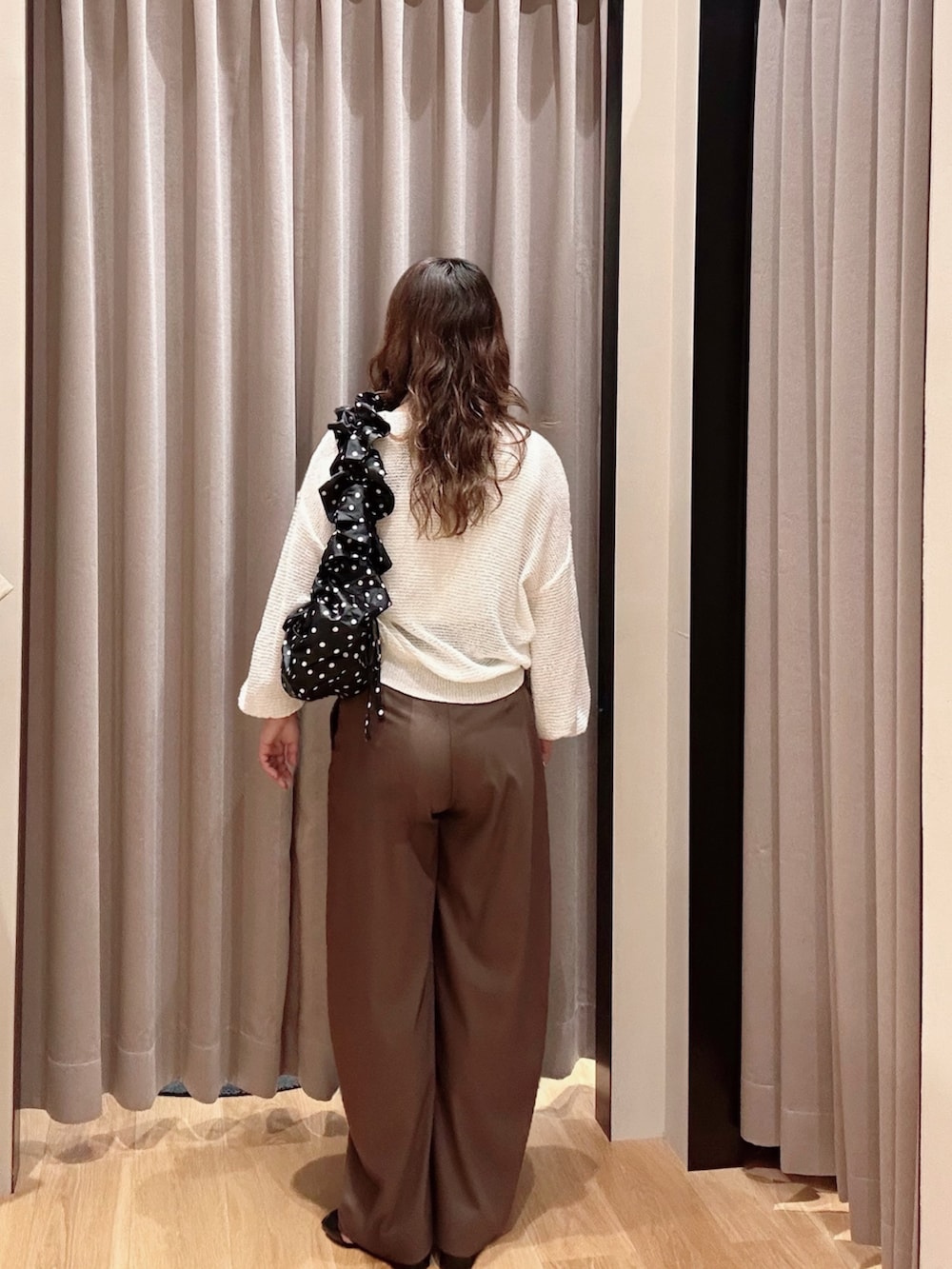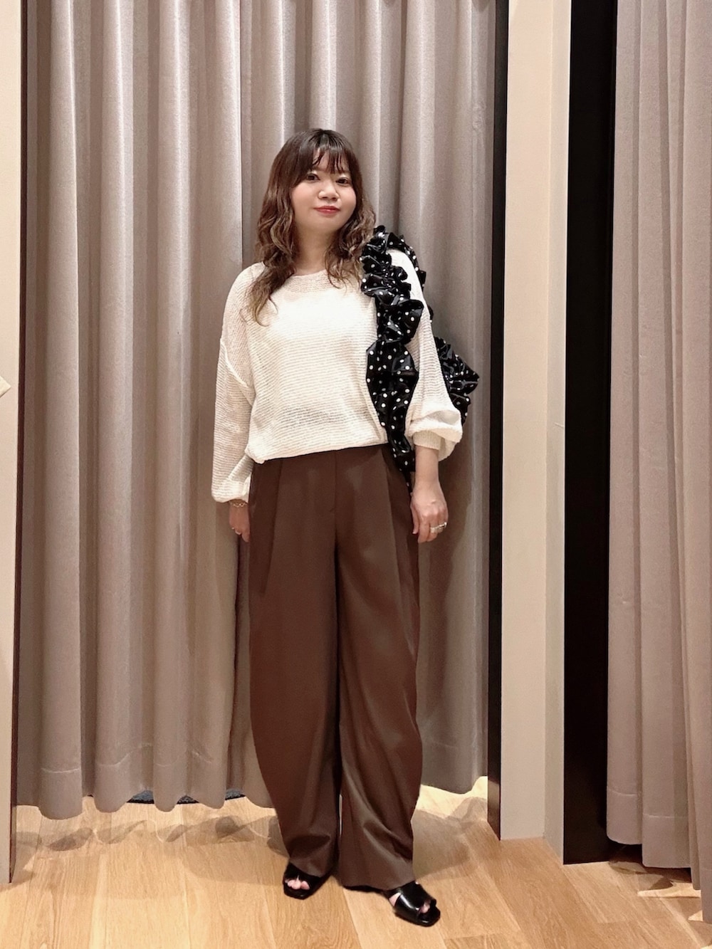 ボトムスは足のラインを拾わずキレイめでもは着こなせるスラックス🍭生地は柔らかく股上深めで履きやすい💛💛