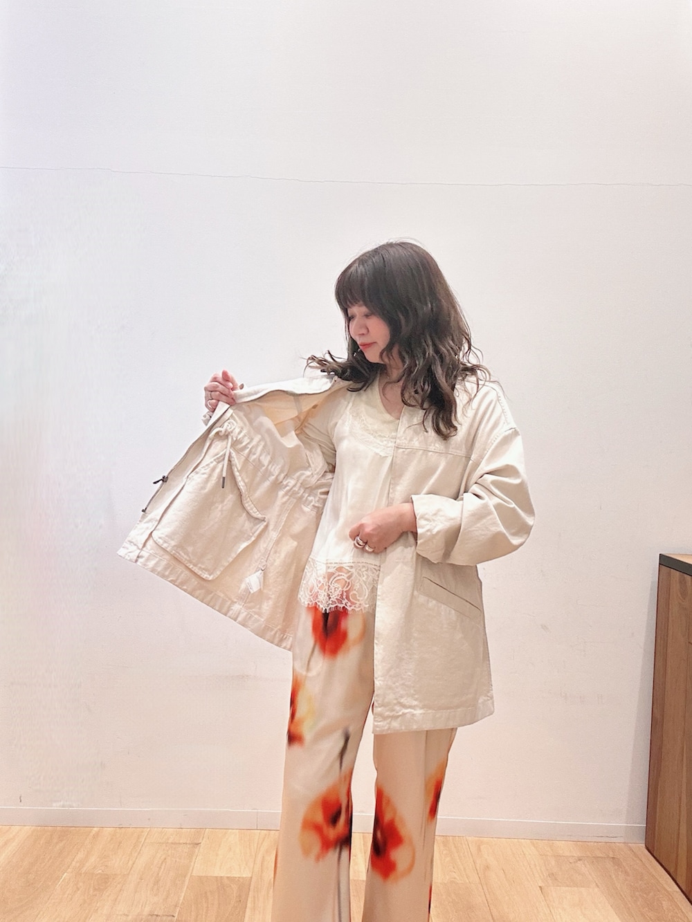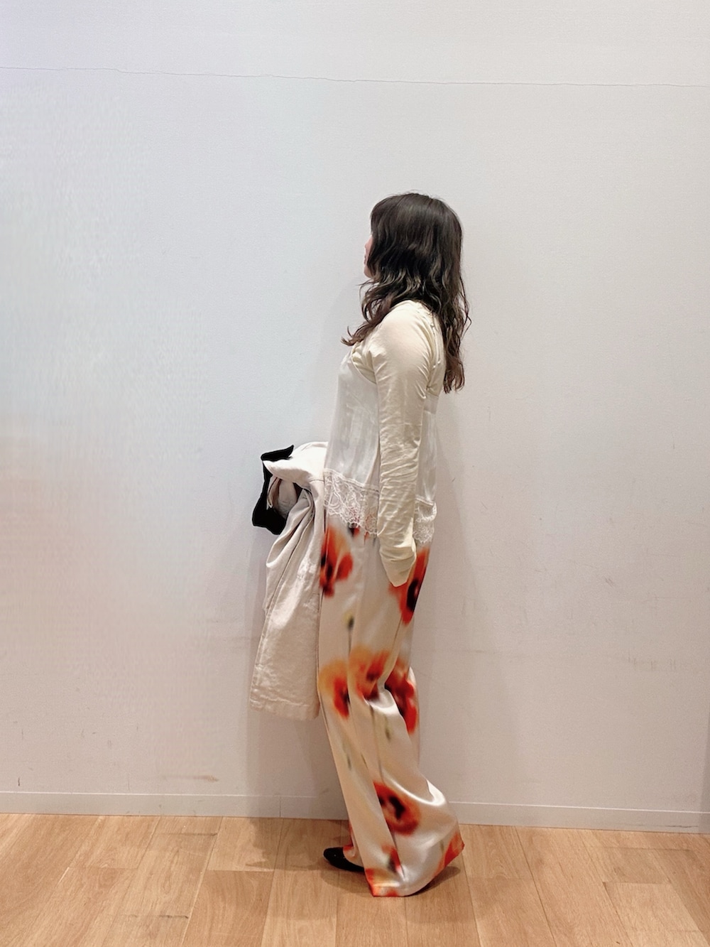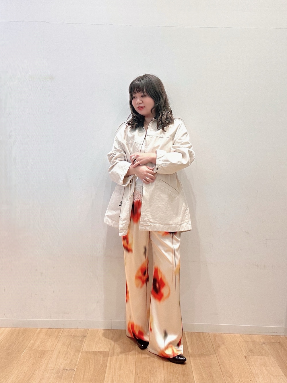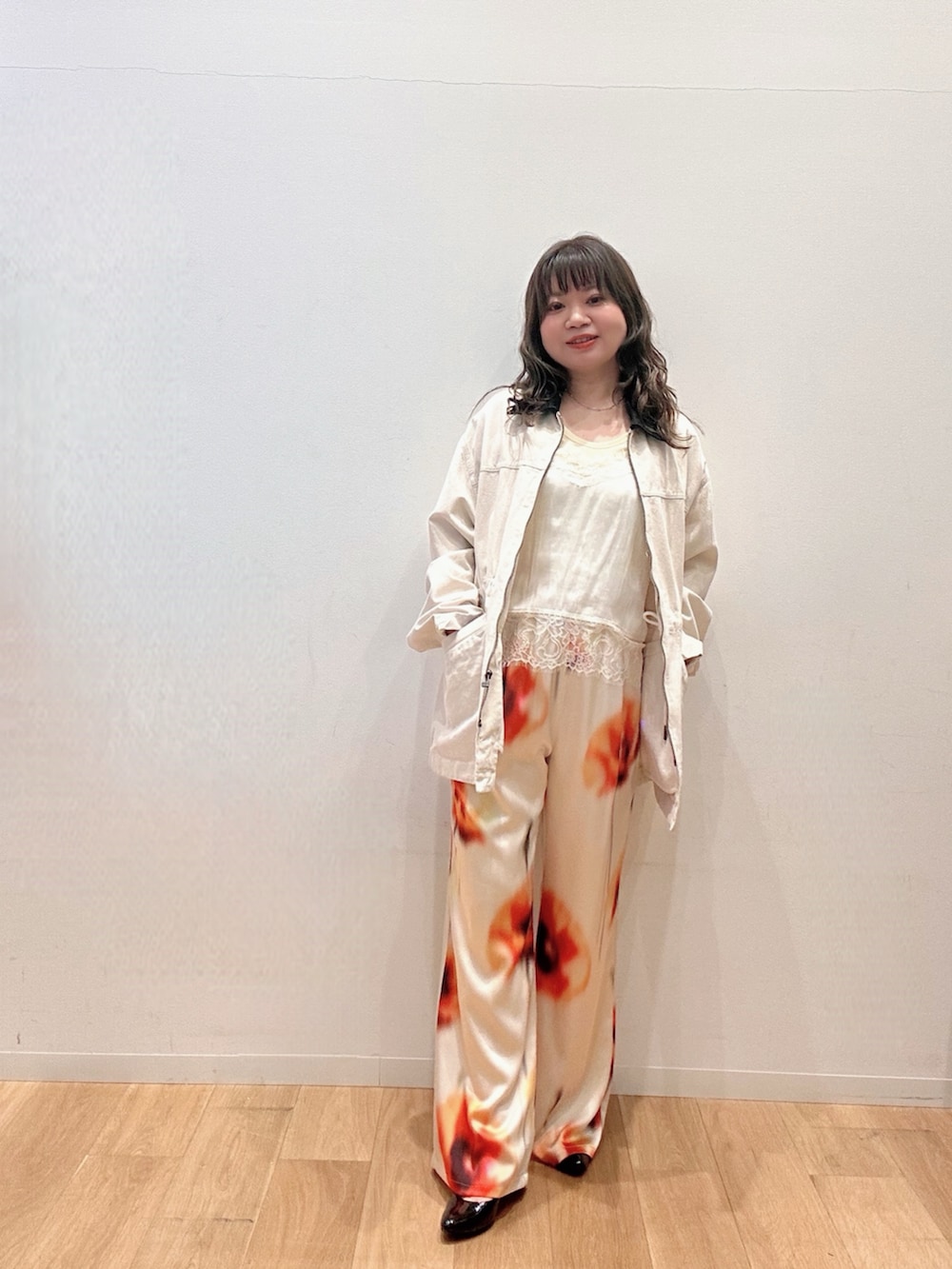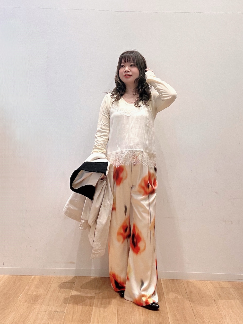 フラワー柄のパンツに合わせてインナーも白と黄色で統一してみました☺️