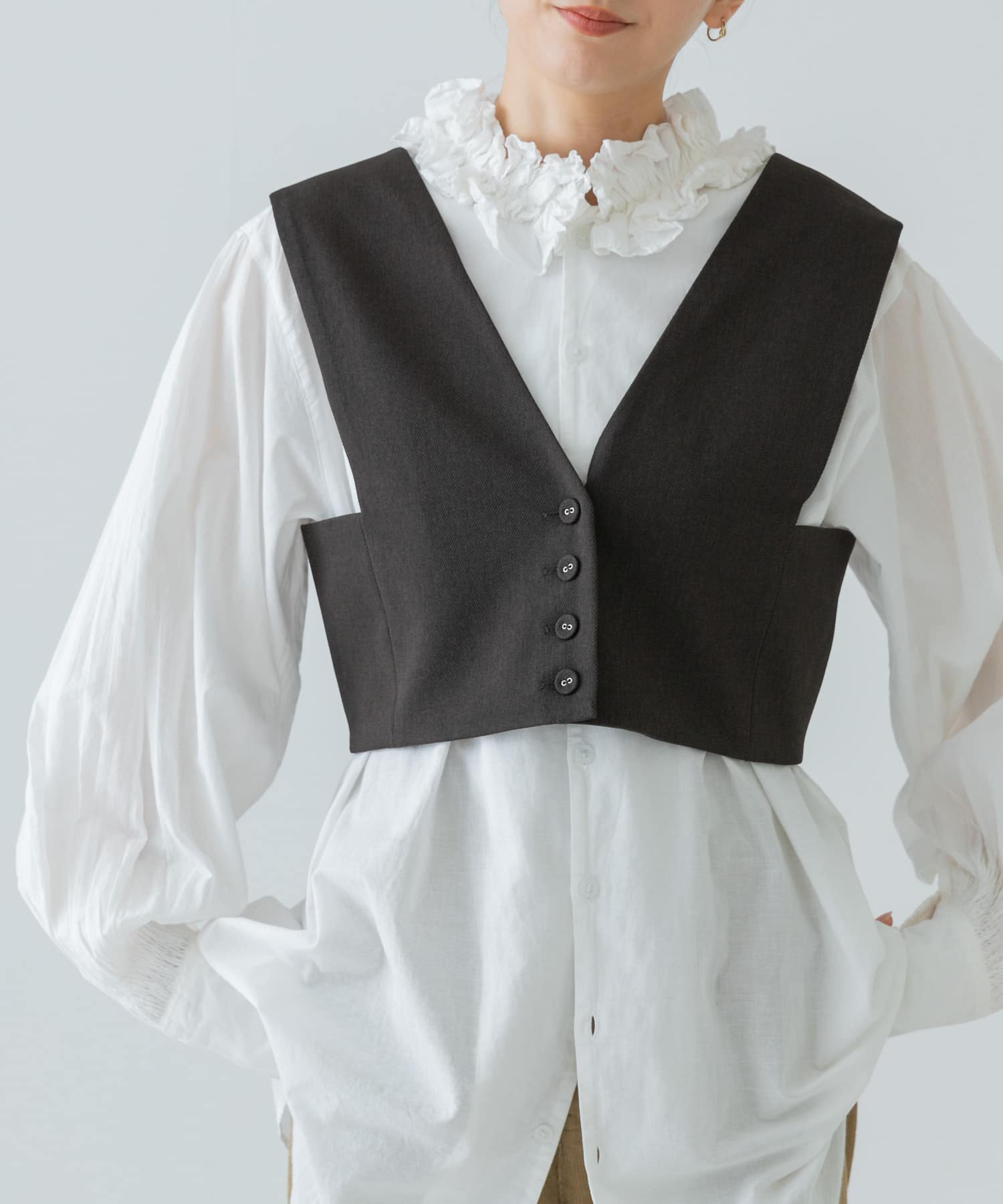 Vネックショート丈ベスト