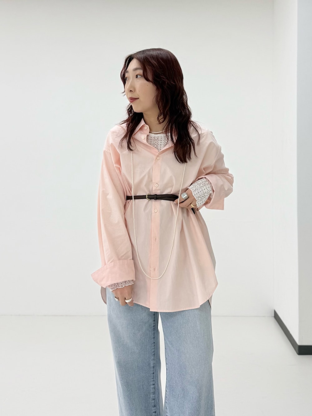 オーバーサイズなのでベルトをポイントで合わせました◎