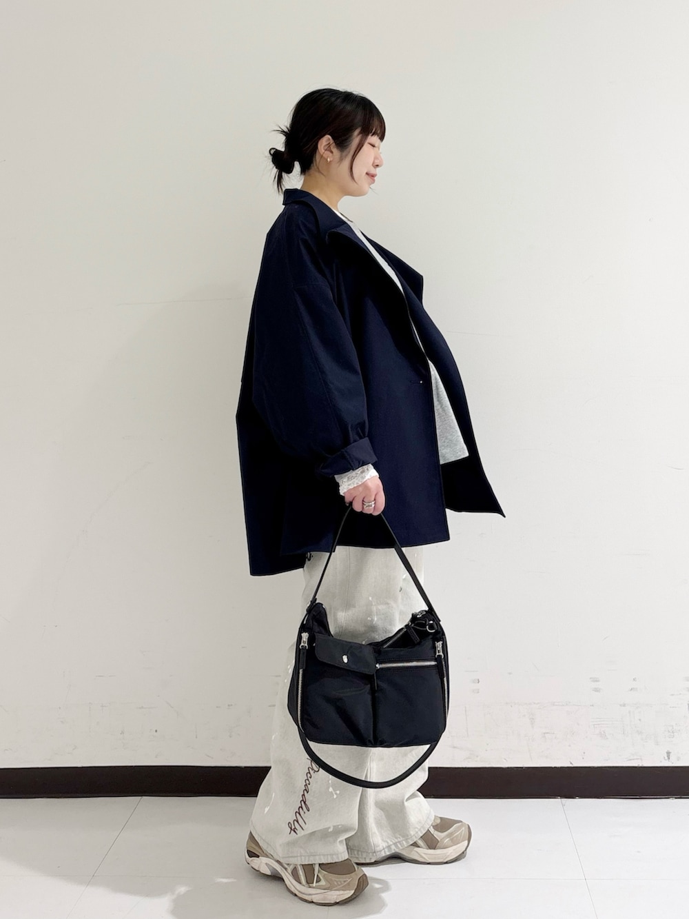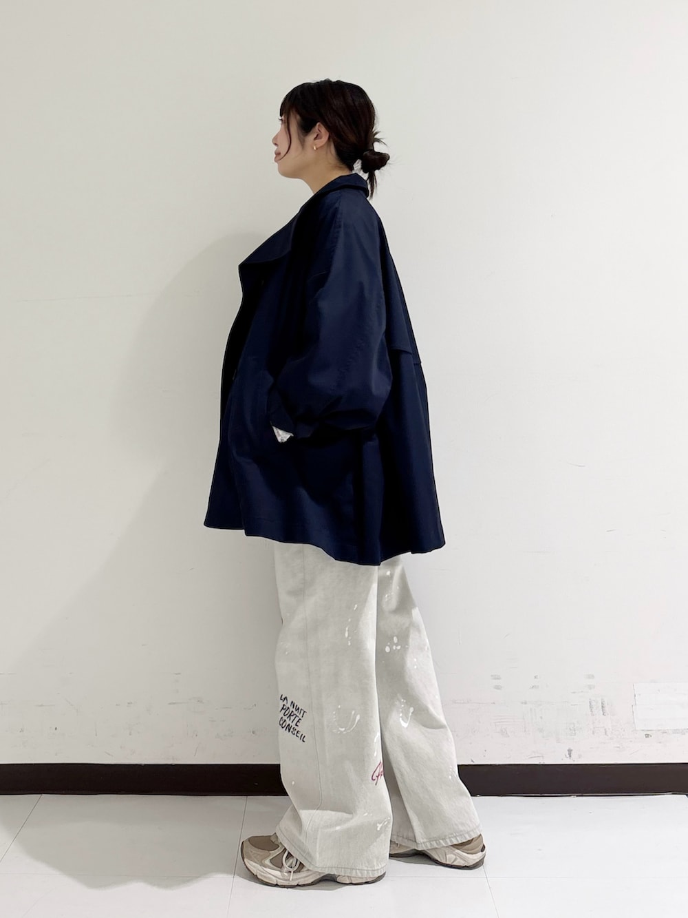 袖周りや身幅がゆったりしていて、中に厚手のニットやスウェットを着てもモコモコせずに羽織っていただけるので、まだまだ寒い季節の変わり目にとっても重宝しますよ✨