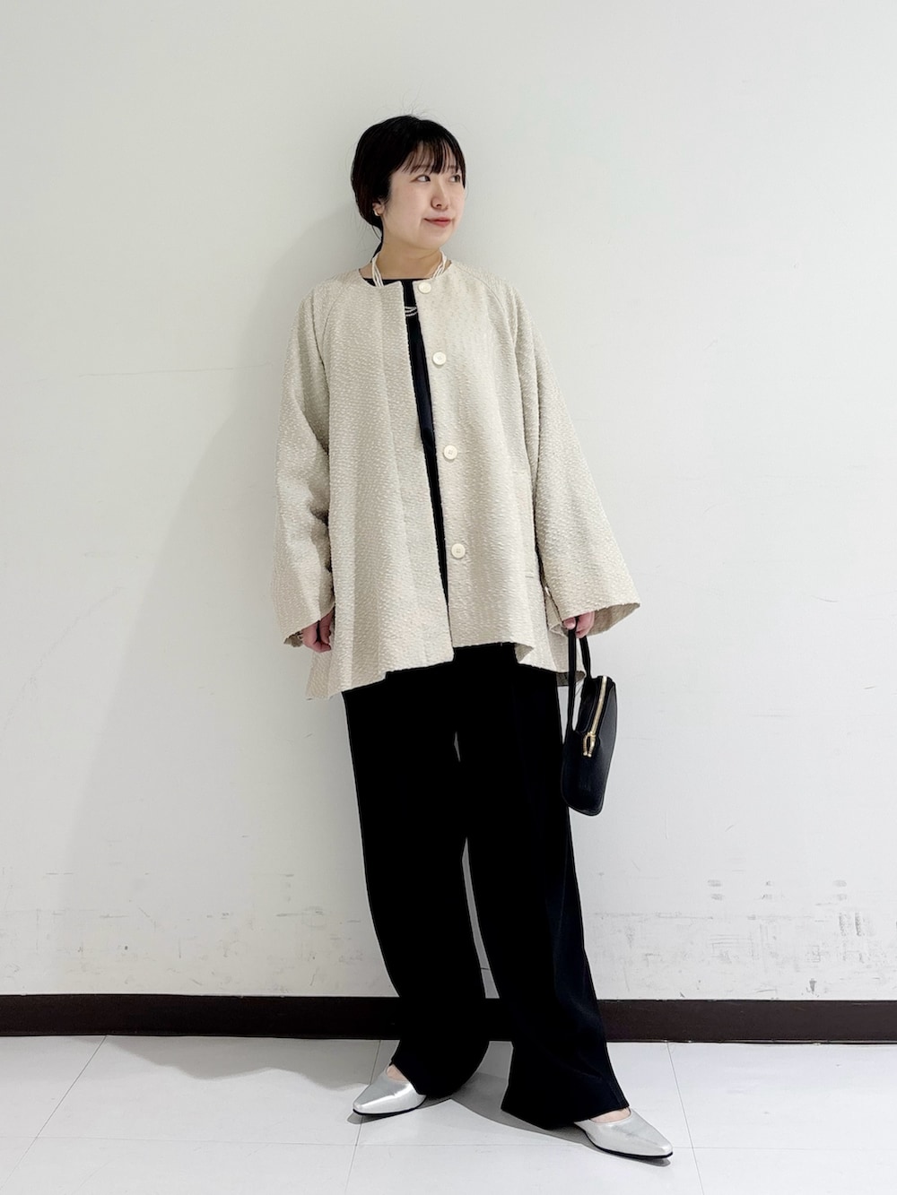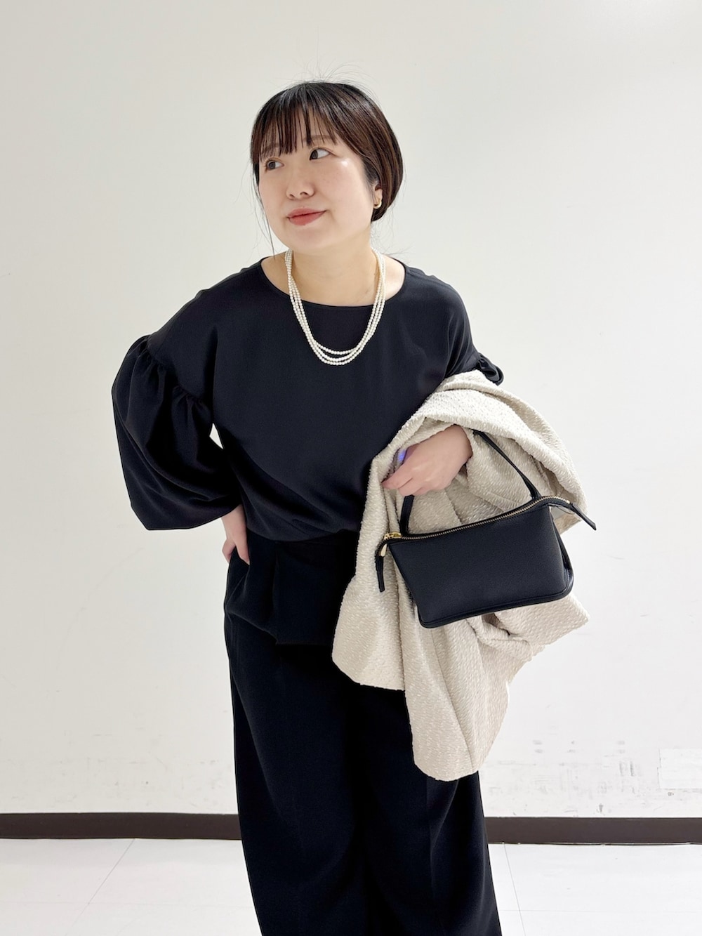 ゆったりシルエットでぽわん袖が女性らしい上品さがあります。
