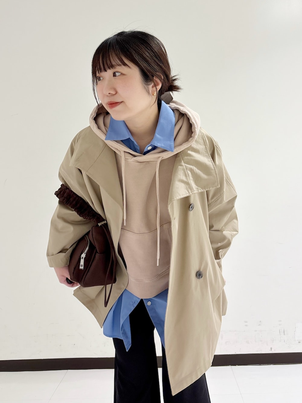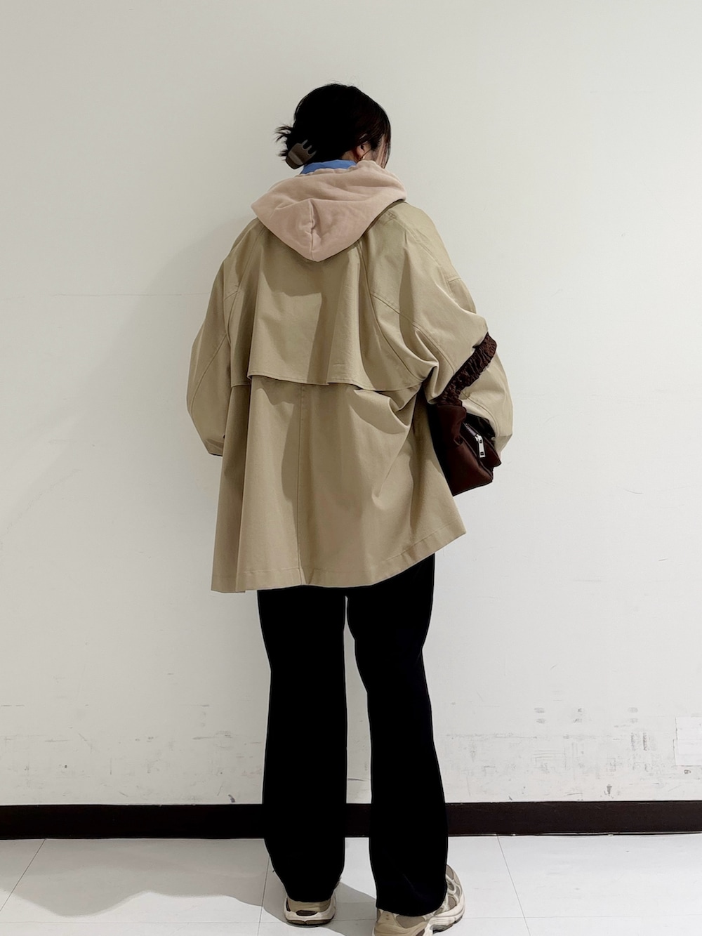 袖周りや身幅がゆったりしていて、中に厚手のニットやスウェットを着てもモコモコせずに羽織っていただけるので、まだまだ寒い季節の変わり目にとっても重宝しますよ✨